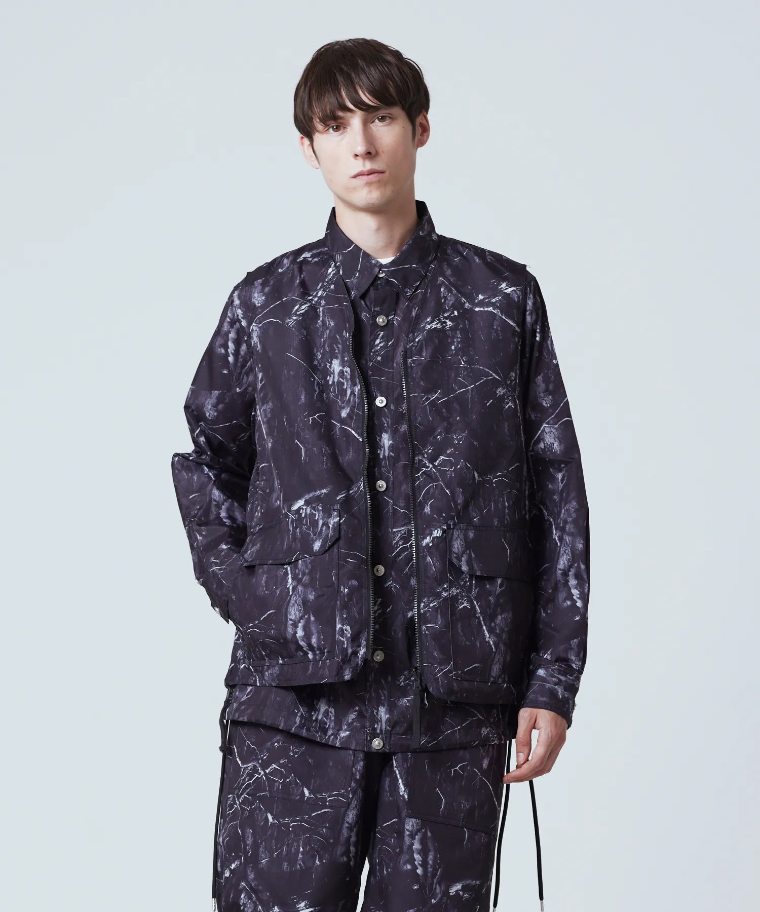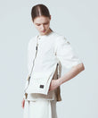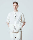 さらに両脇にファスナースリットを配し、可動域を確保するとともに、ボトムのポケットへもアクセスしやすい設計にしました。