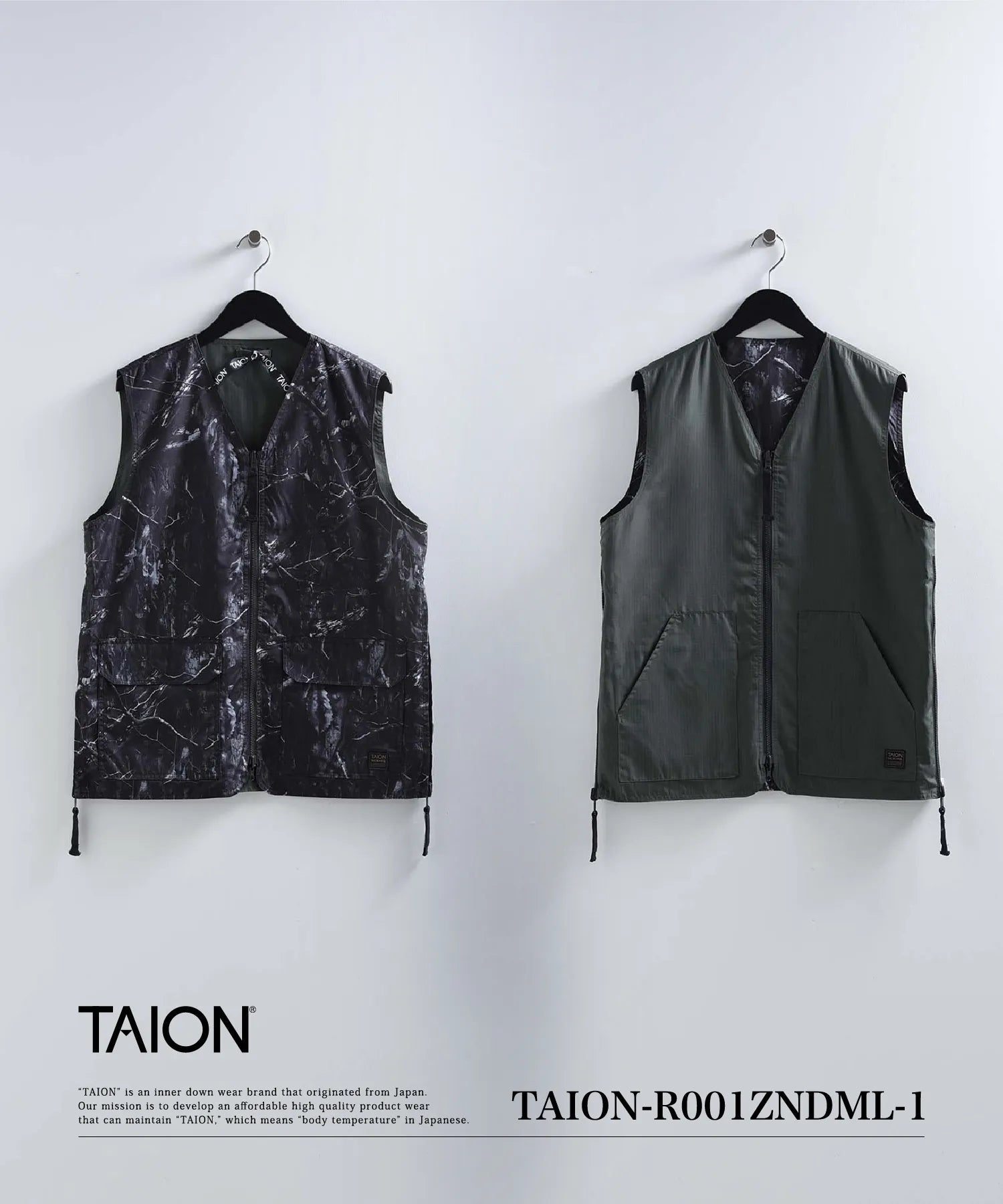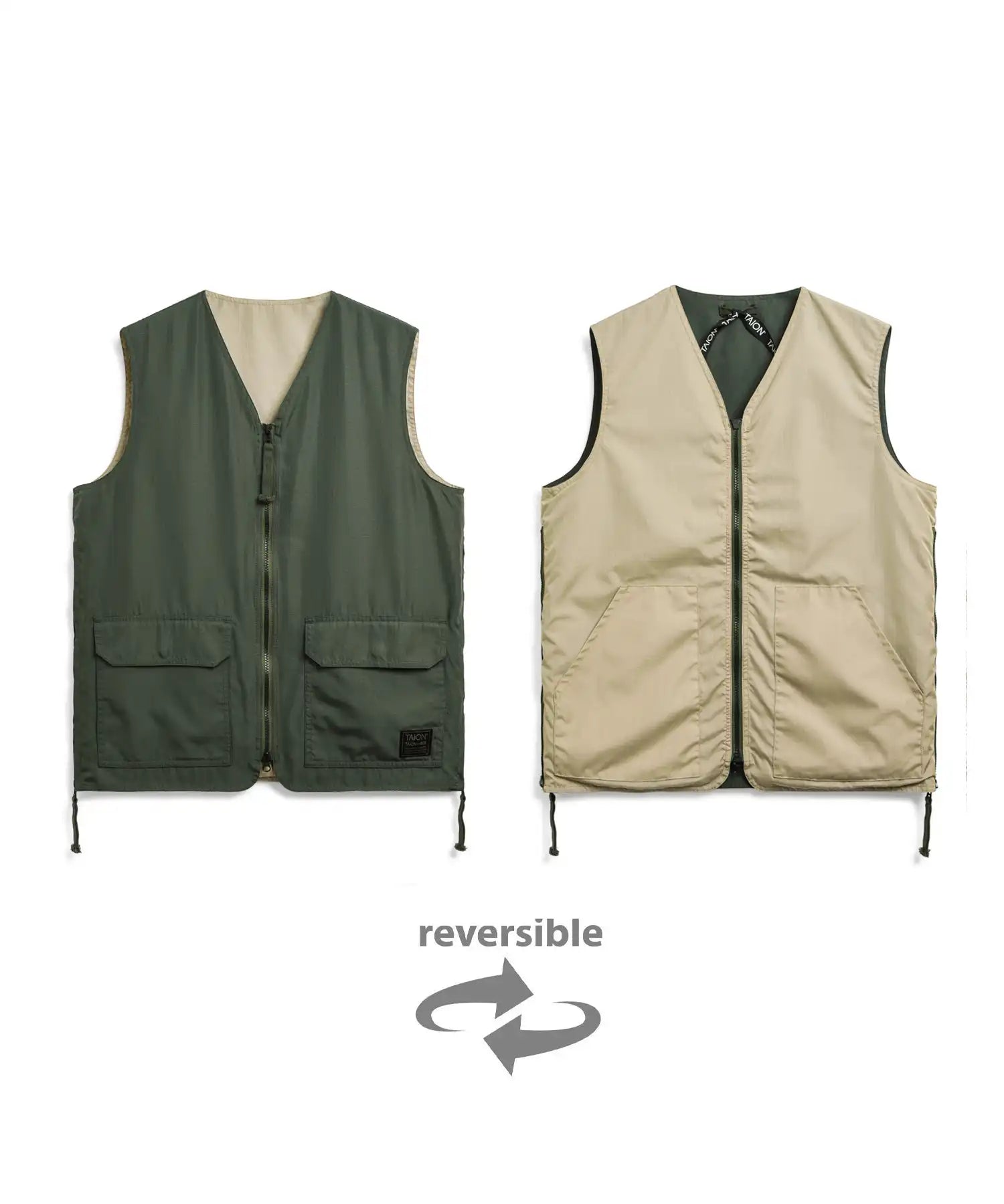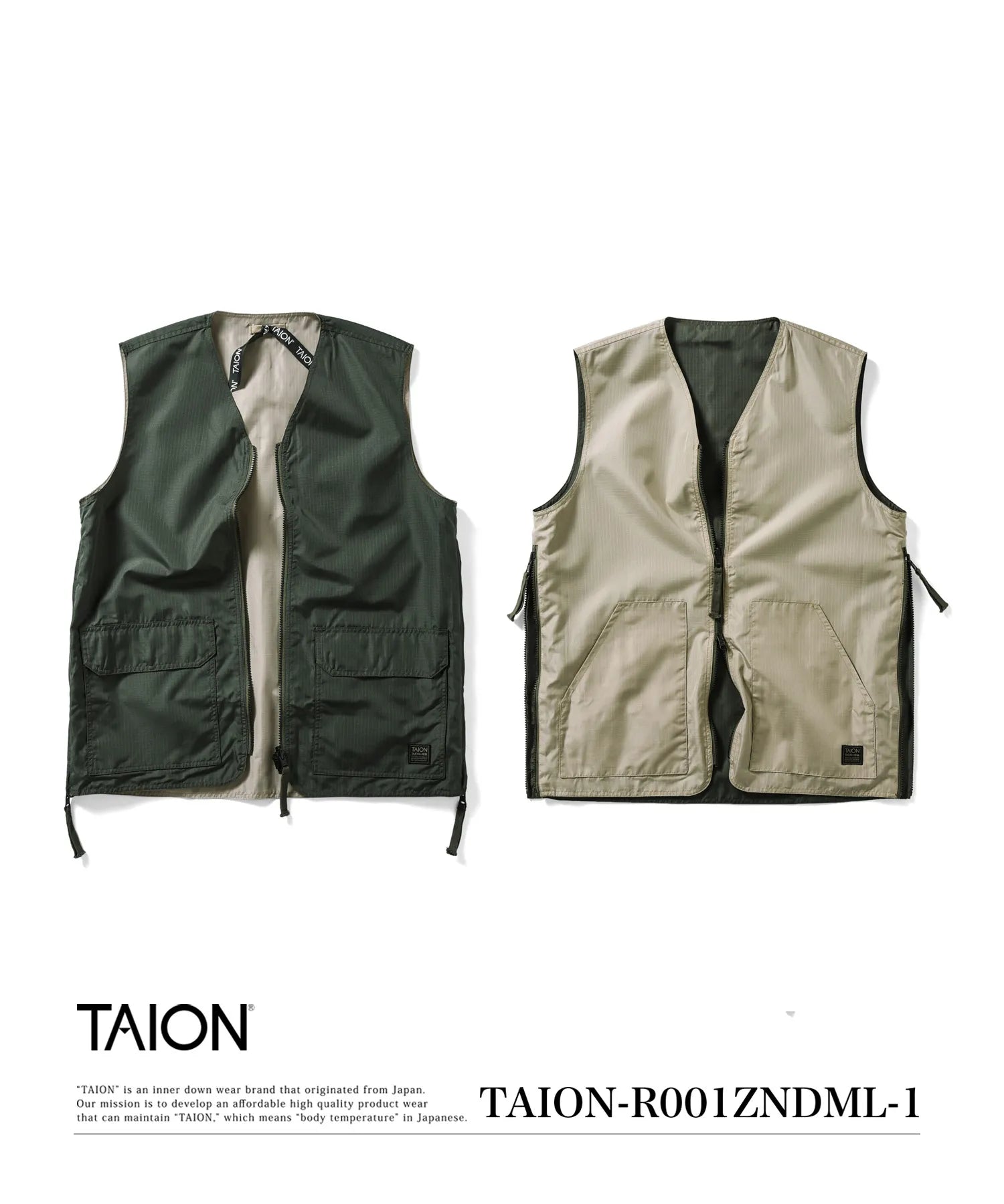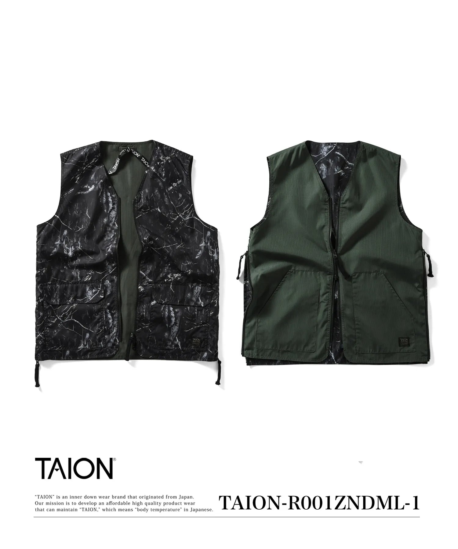 【UNISEX】ノンダウン ミリタリー リバーシブル Vネックベスト(TAION-R001ZNDML-1)