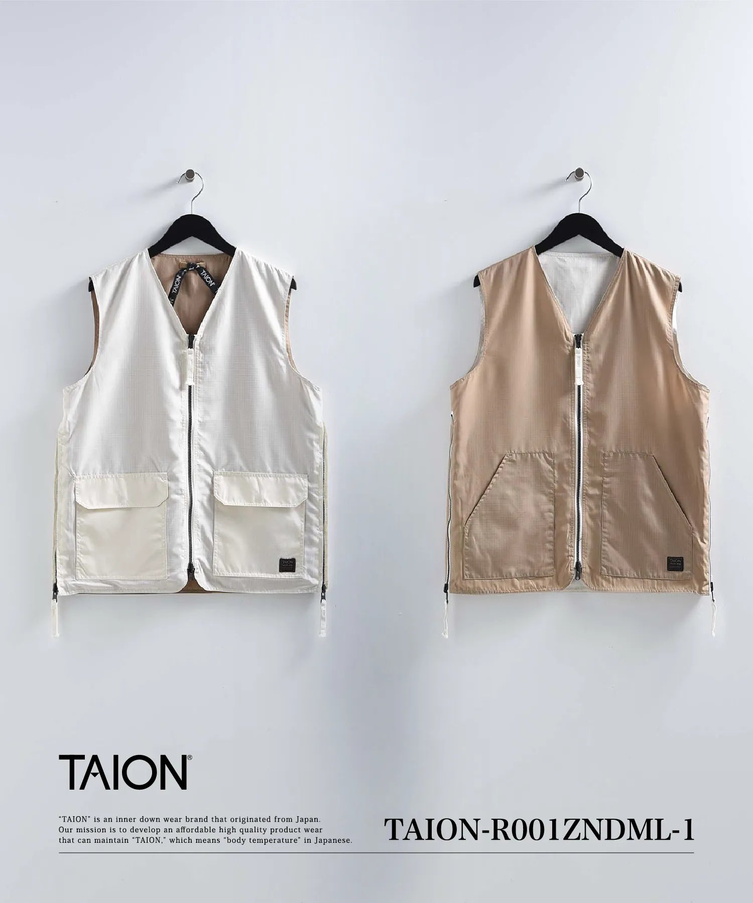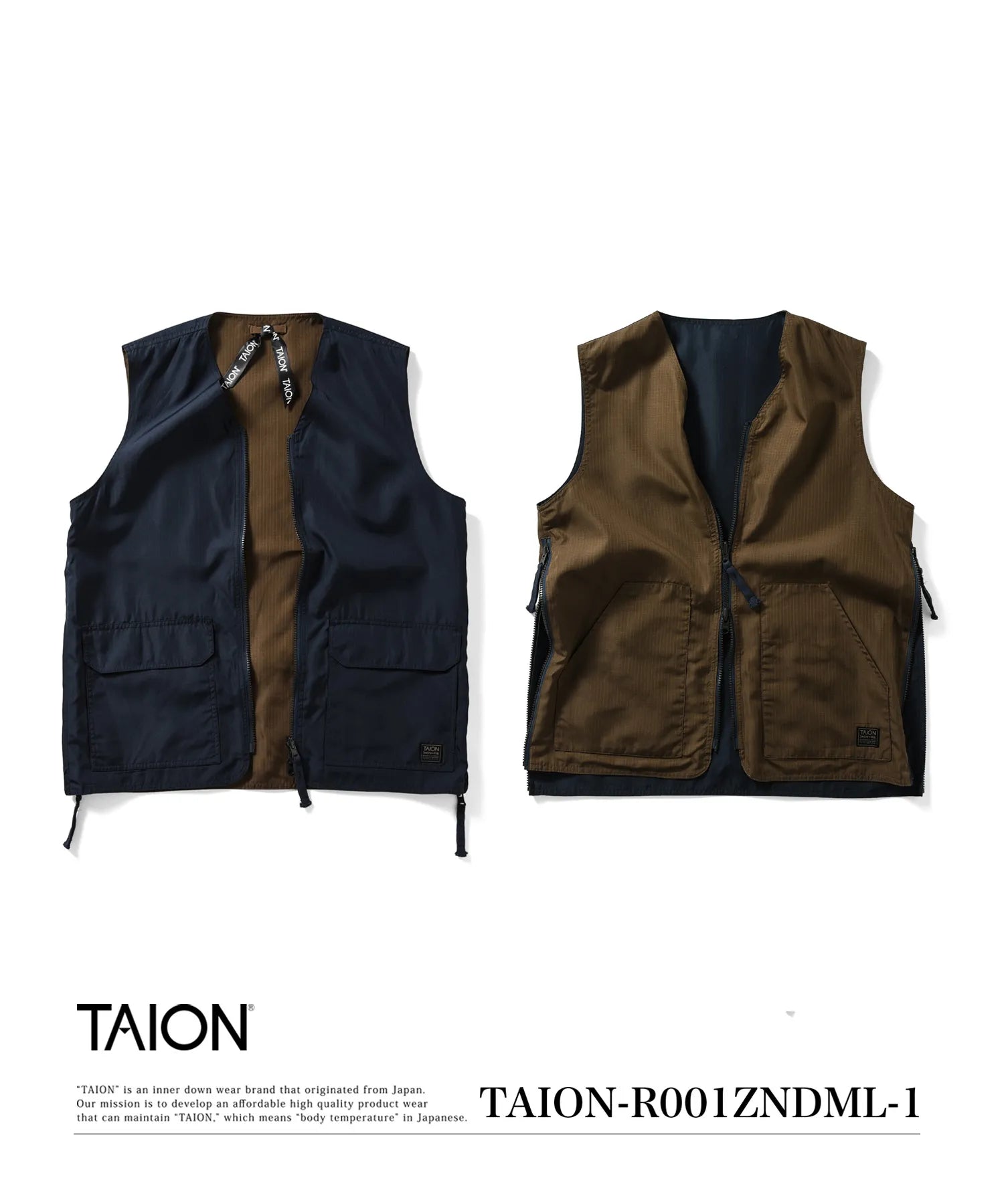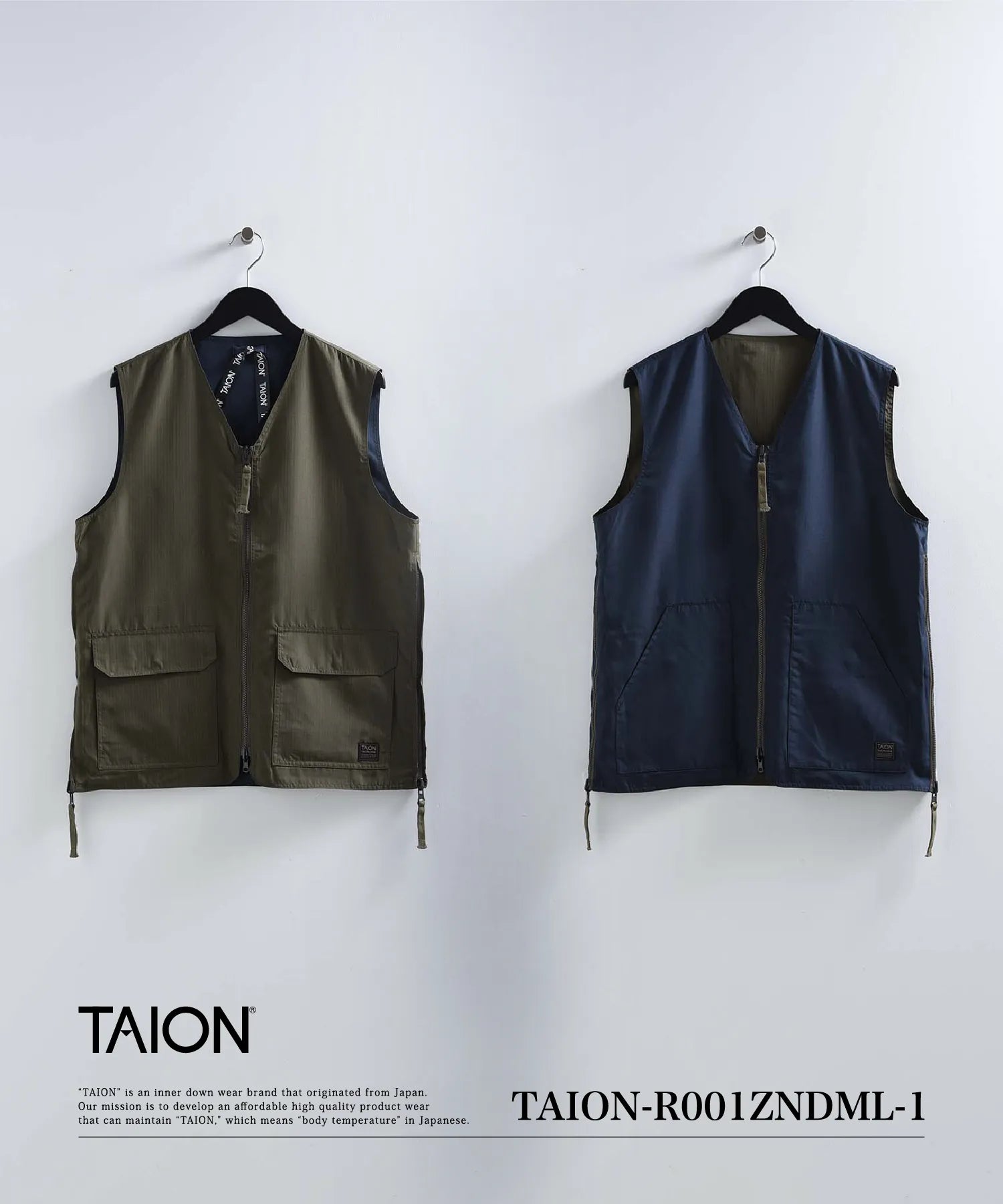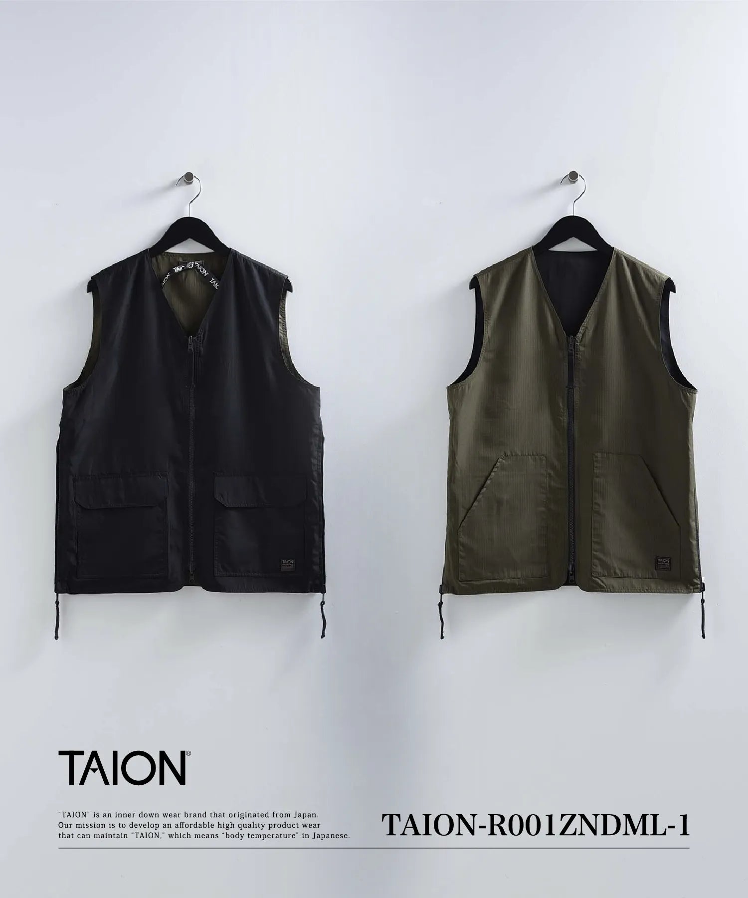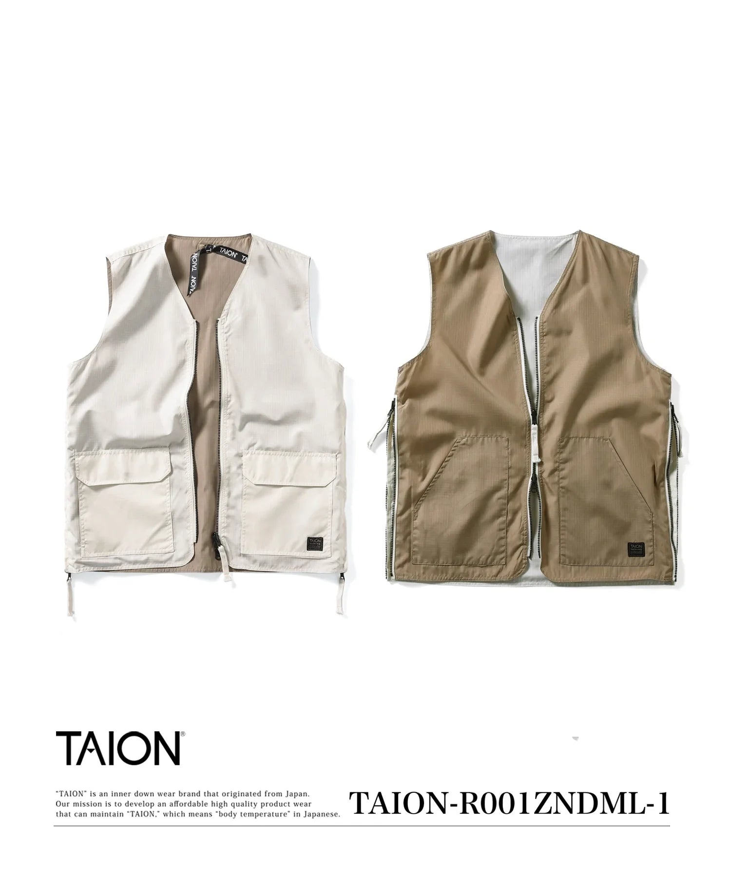 【UNISEX】ノンダウン ミリタリー リバーシブル Vネックベスト(TAION-R001ZNDML-1)