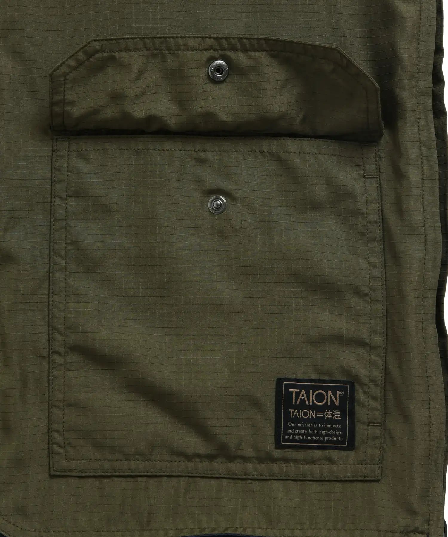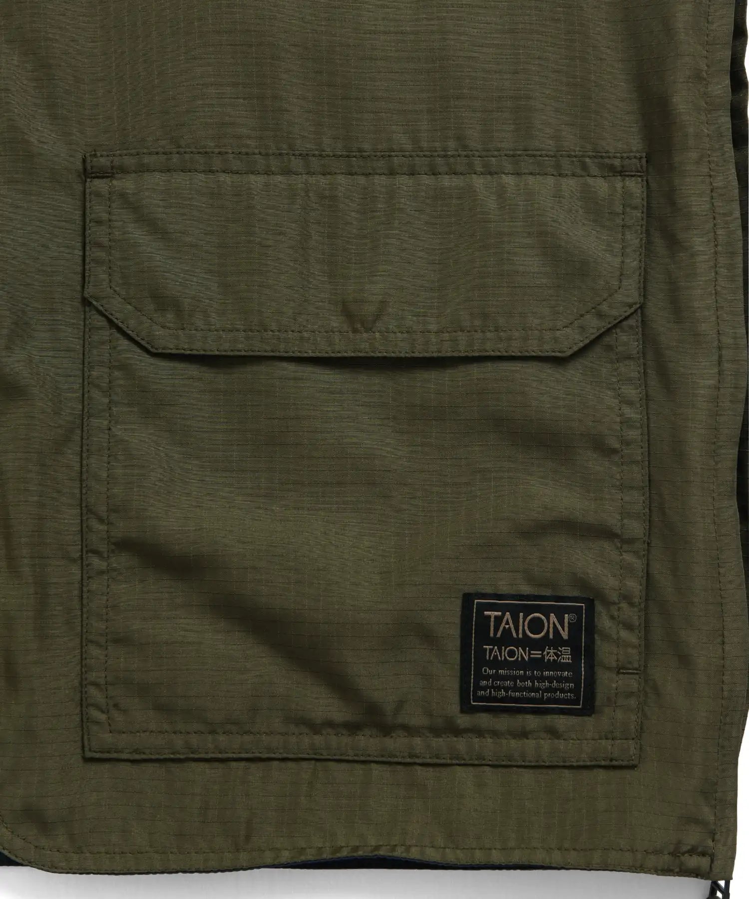 TAIONミリタリーラインで採用している高密度リップストップ生地を使用し、軽量ながらも優れた耐久性を実現。