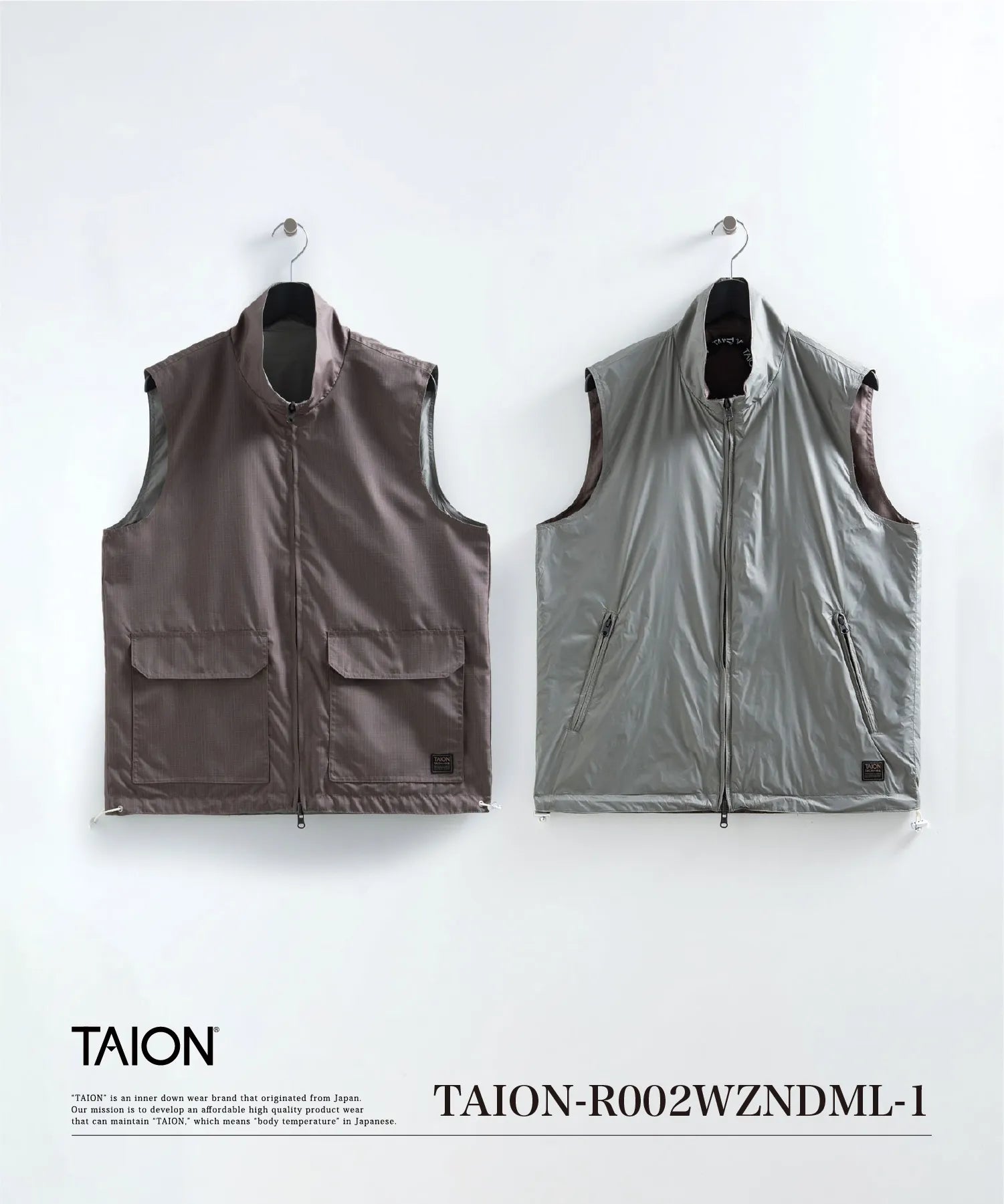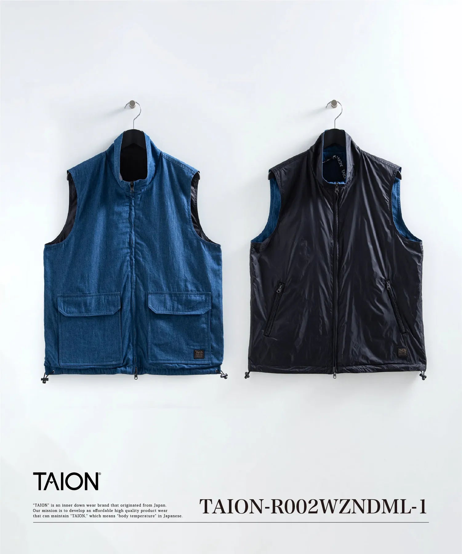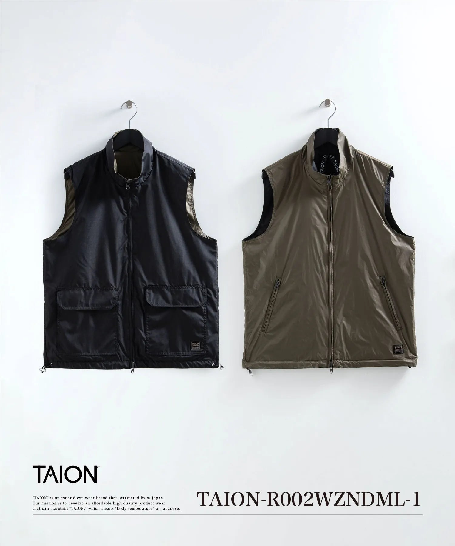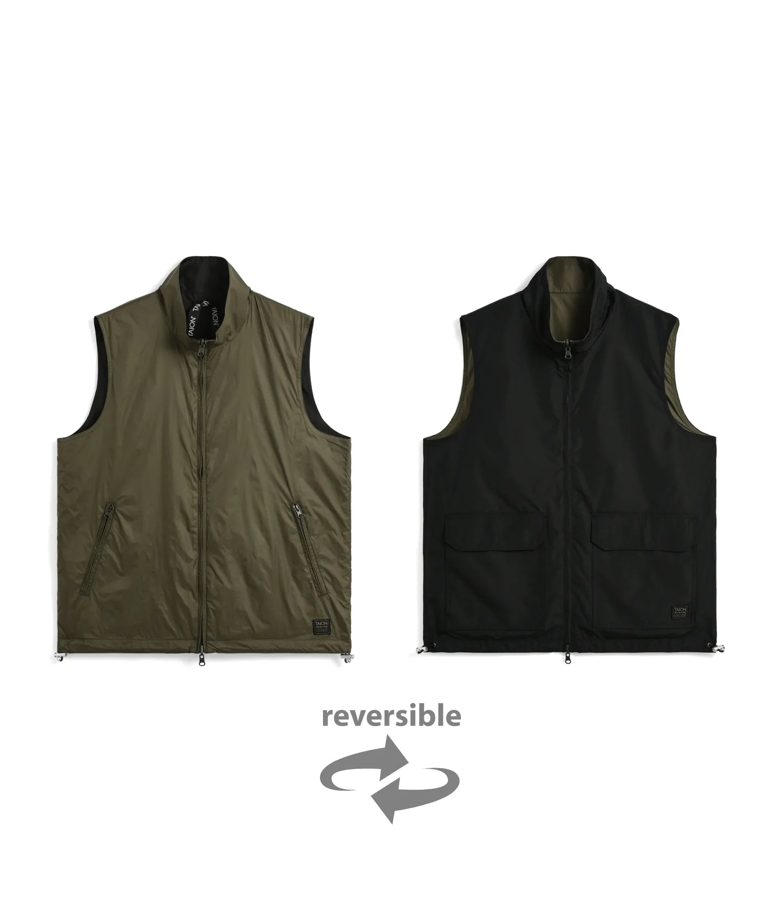 【UNISEX】ノンダウン ミリタリー リバーシブル ハイネック ベスト(TAION-R002WZNDML-1)