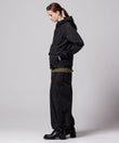 さらに両脇にはファスナースリットを備え、可動域を確保しながらボトムのポケットへもアクセスしやすい設計に。