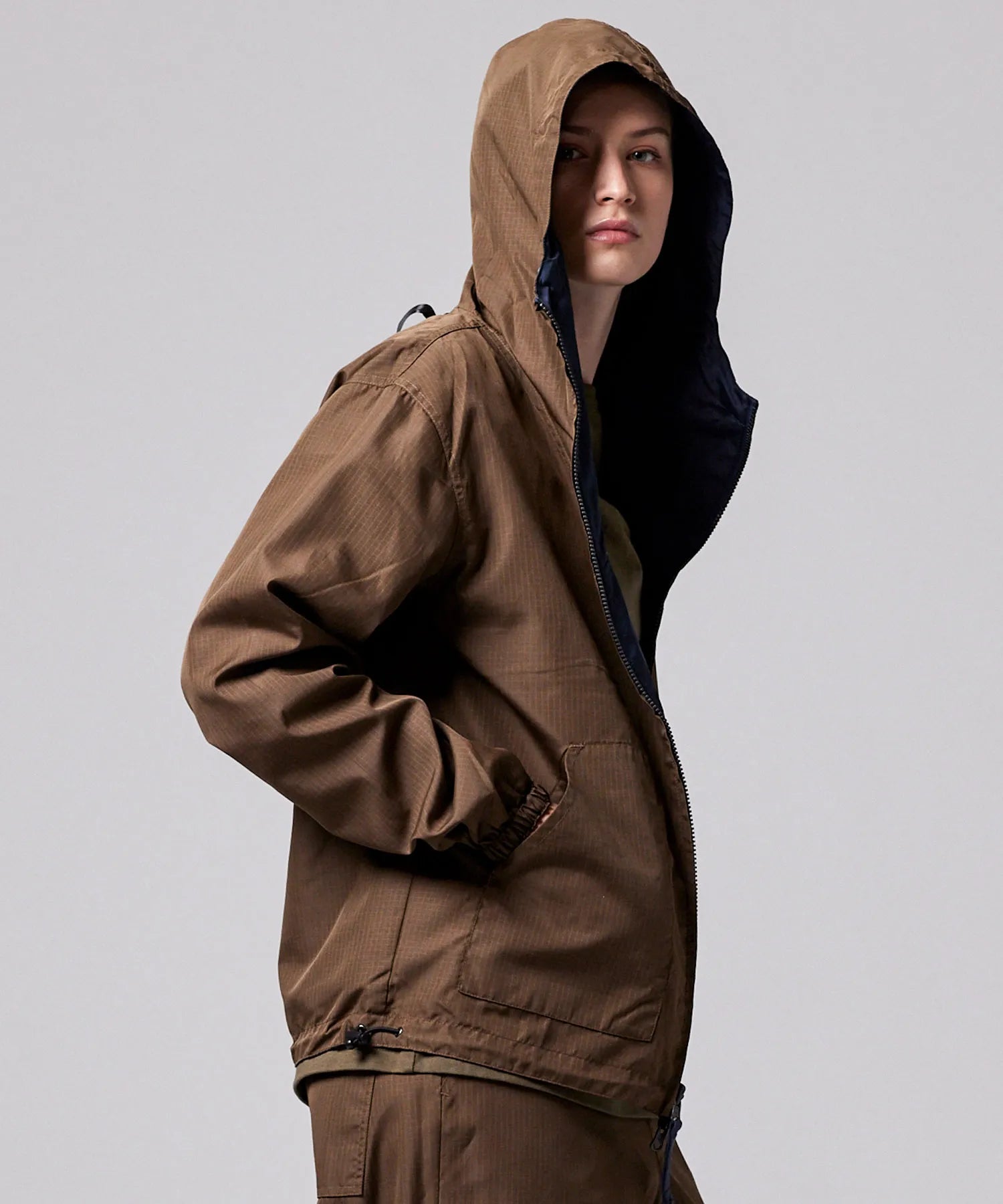 ミリタリーテイストをベースに、カジュアルに軽く羽織れる雰囲気に昇華させたリバーシブルジップパーカー。