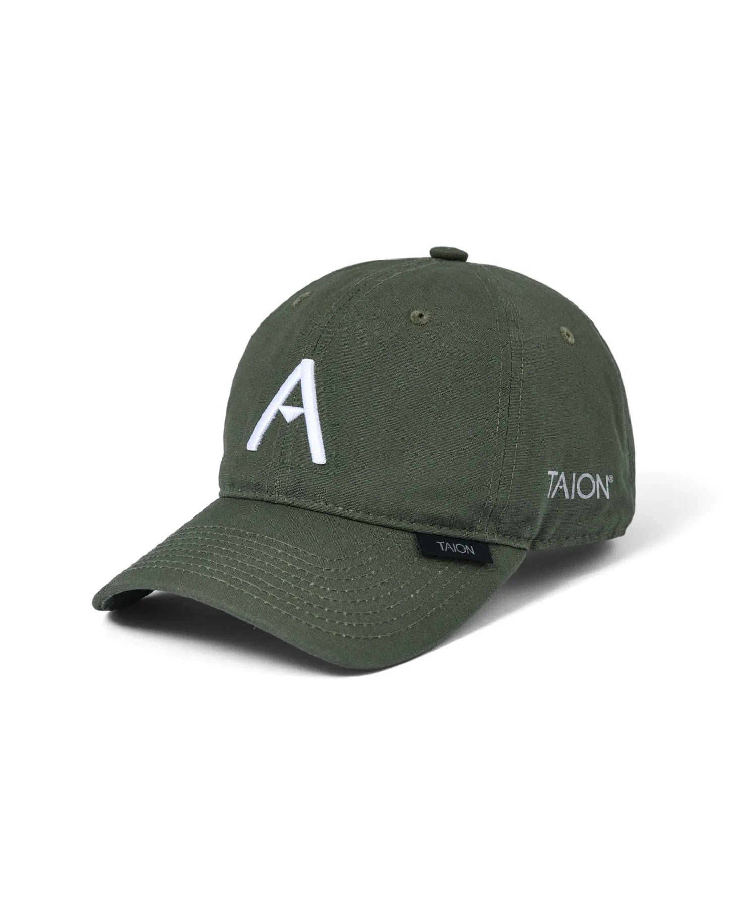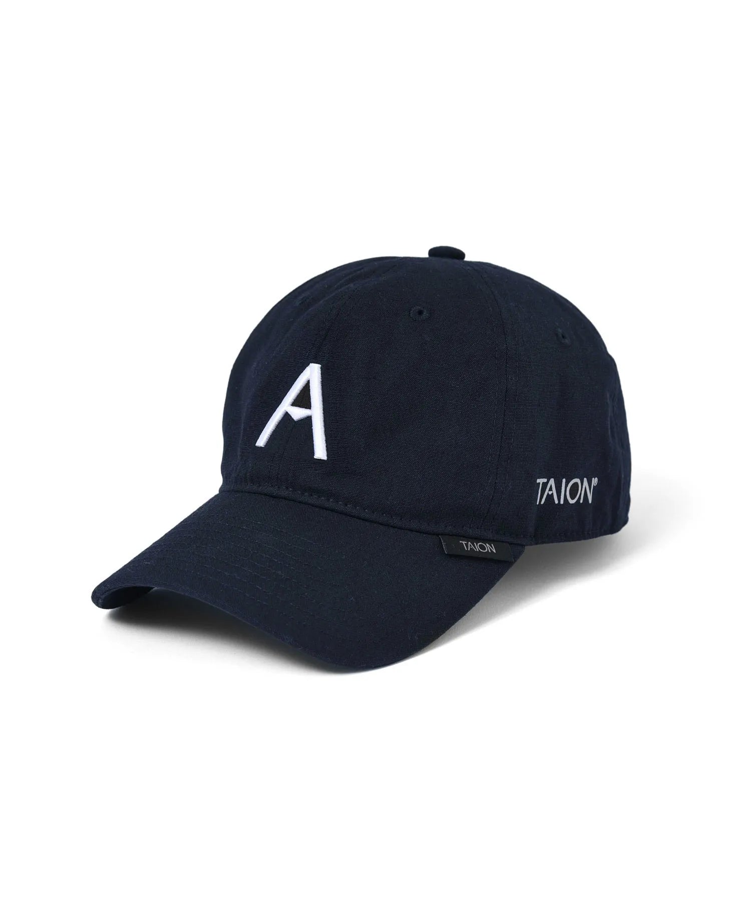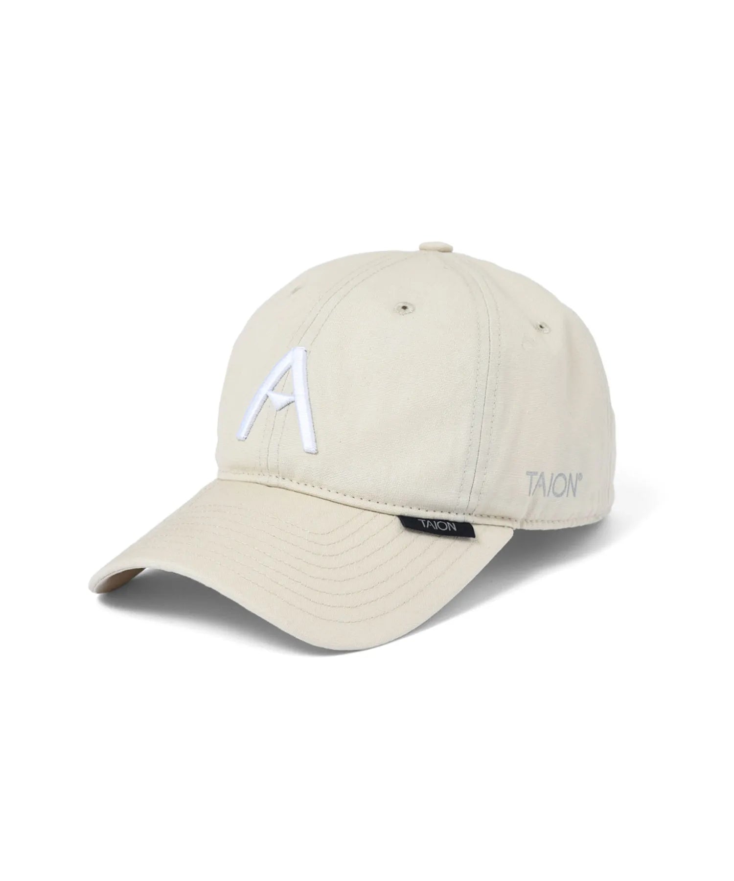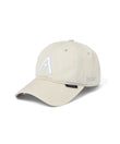 フロントに「A」の刺繍を配した、キャンバス生地のベースボールキャップです。