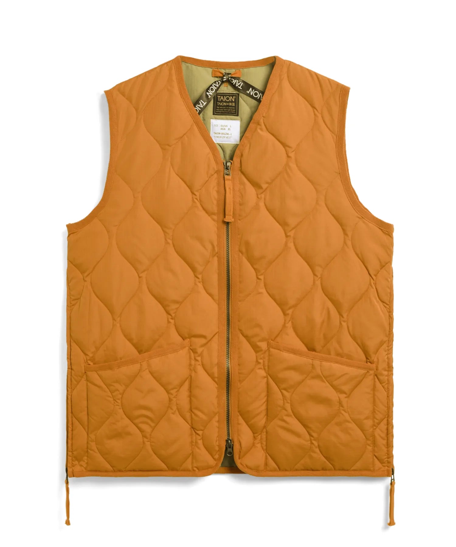 "ミリタリーラインのベストセラー、VネックWジップダウンべスト"