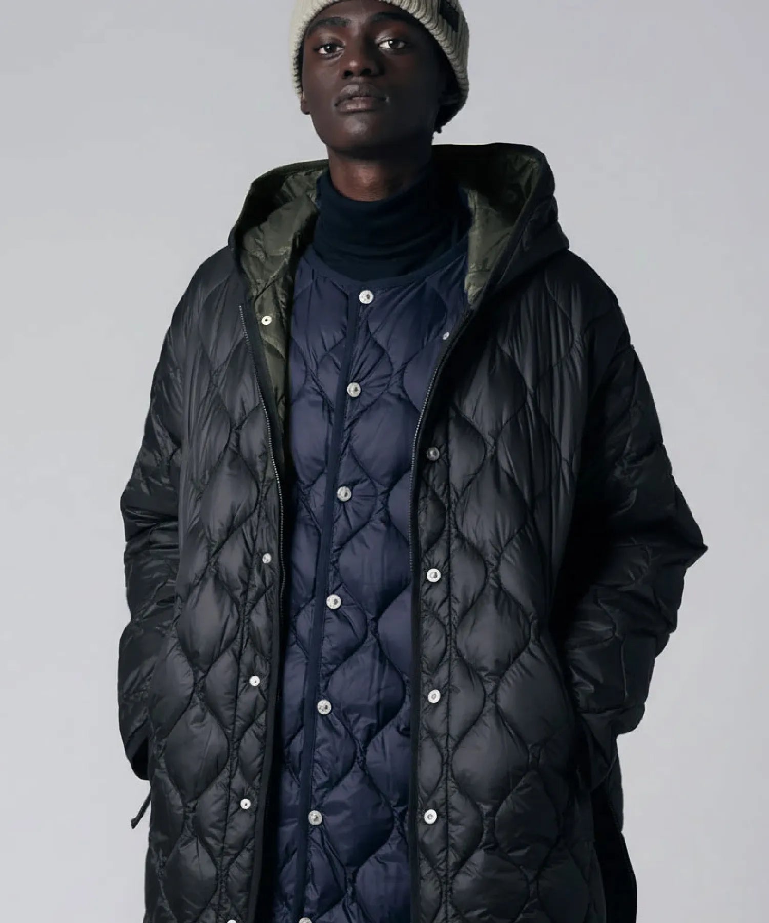 従来のインナーダウンとは違い、ワンサイズ大きめなシルエットに仕上げていますので、少しルーズなスタイルで着ていただくこともお勧めです。