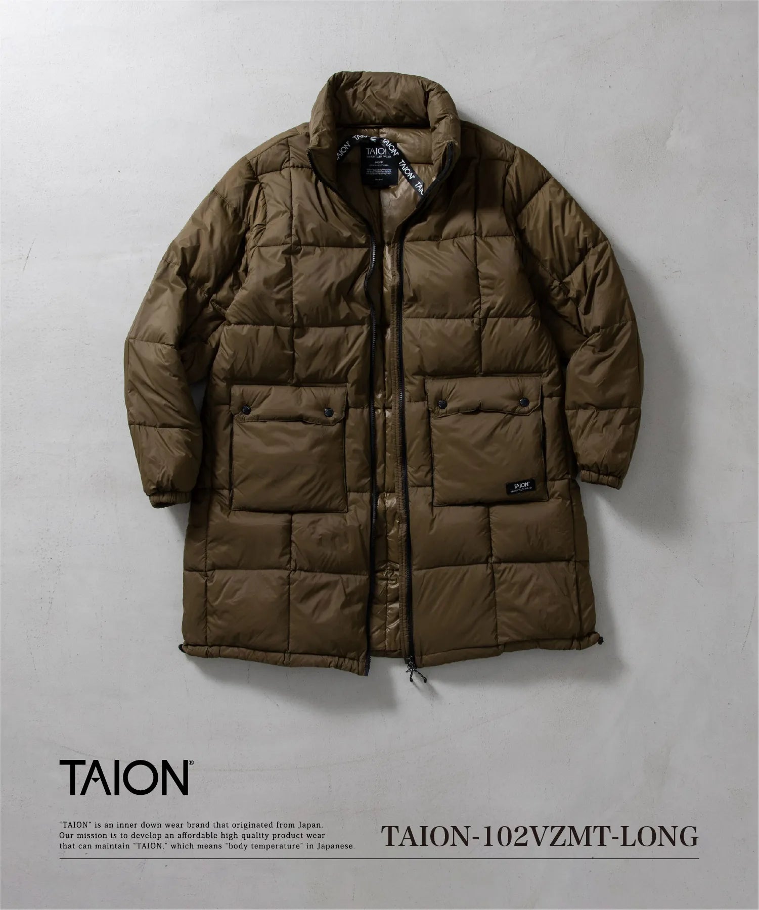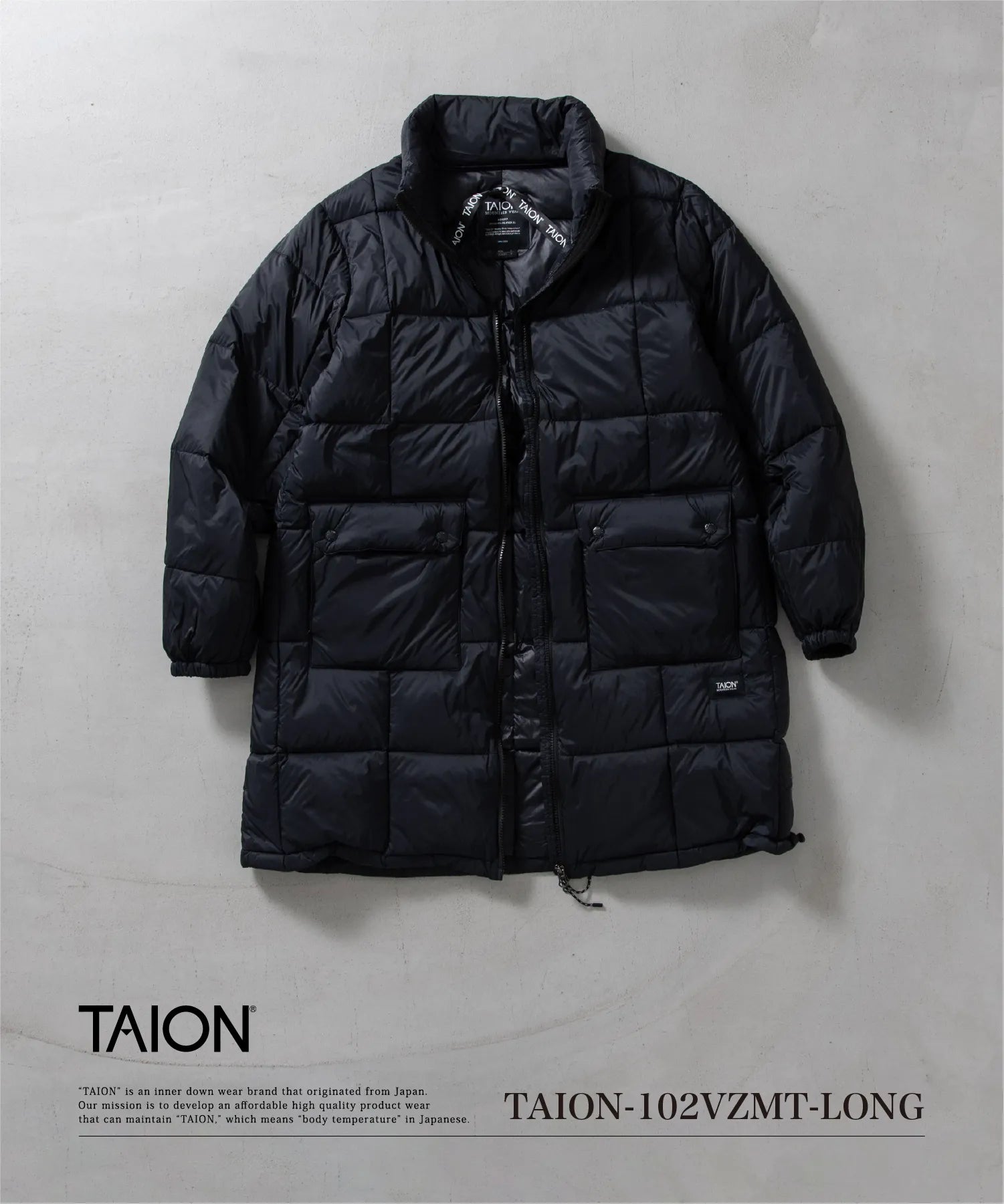 同シリーズのダウンパンツ(TAION-131VMTP)やダウンマフラー(TAION-R201VMT)とセット着用も可能です。