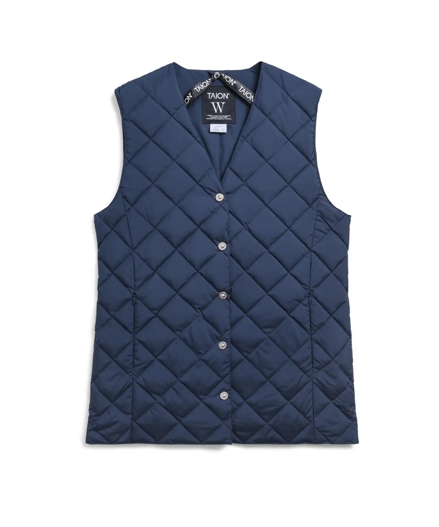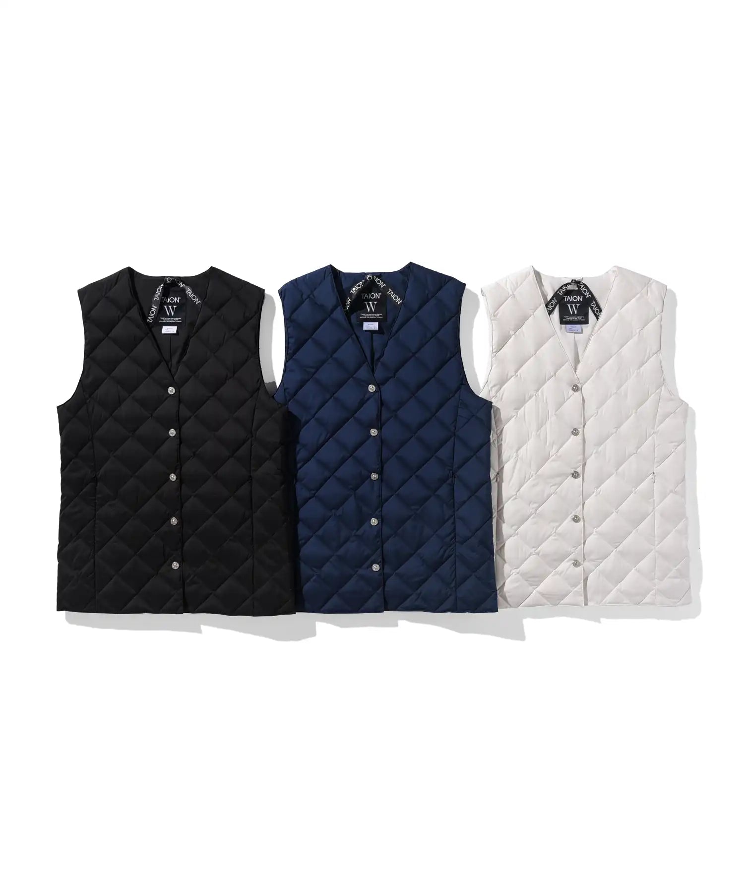 【WOMEN】ダブルライン Vネックセミロングダウンベスト(TAION-W001FE-SL)