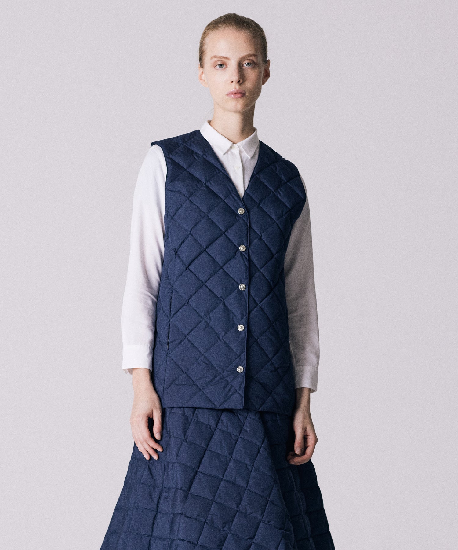 洗練さと機能性を兼ね備えた、女性の為のライトダウンベスト。