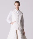 少しシェイプされたウエストと、やや長めの着丈が、すっきりとしたシルエットを演出します。