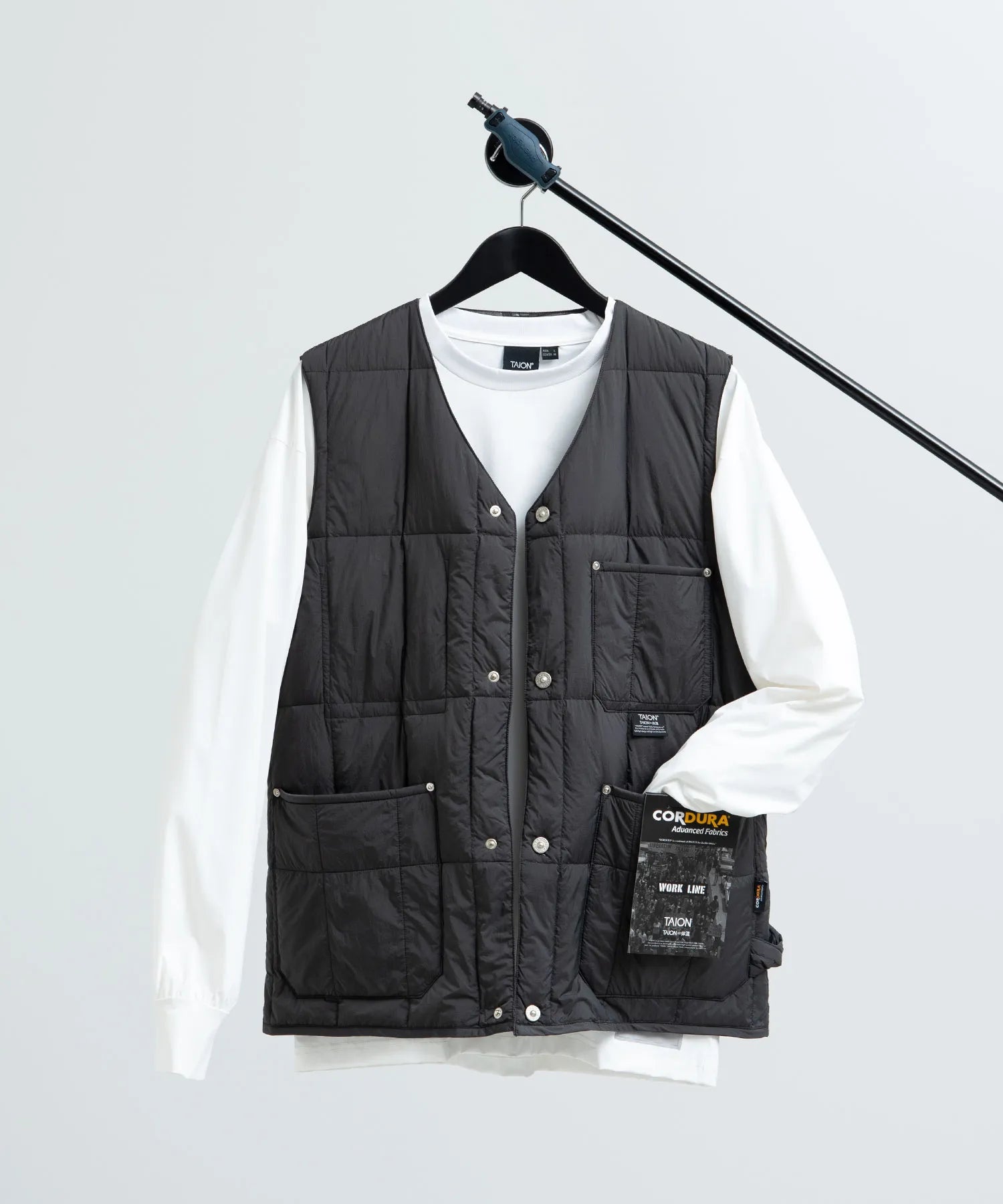 【UNISEX】ワーク Vネックボタン ダウンベスト(TAION-001BWK)