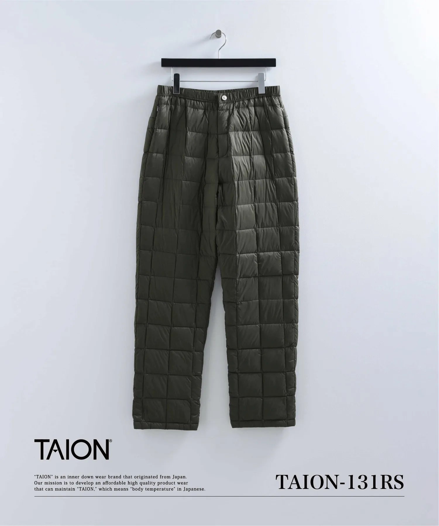 TAIONの定番、ベーシックインナーダウンは、気軽に履ける軽くて暖かく着回しやすいシンプルなデザインが特徴です。