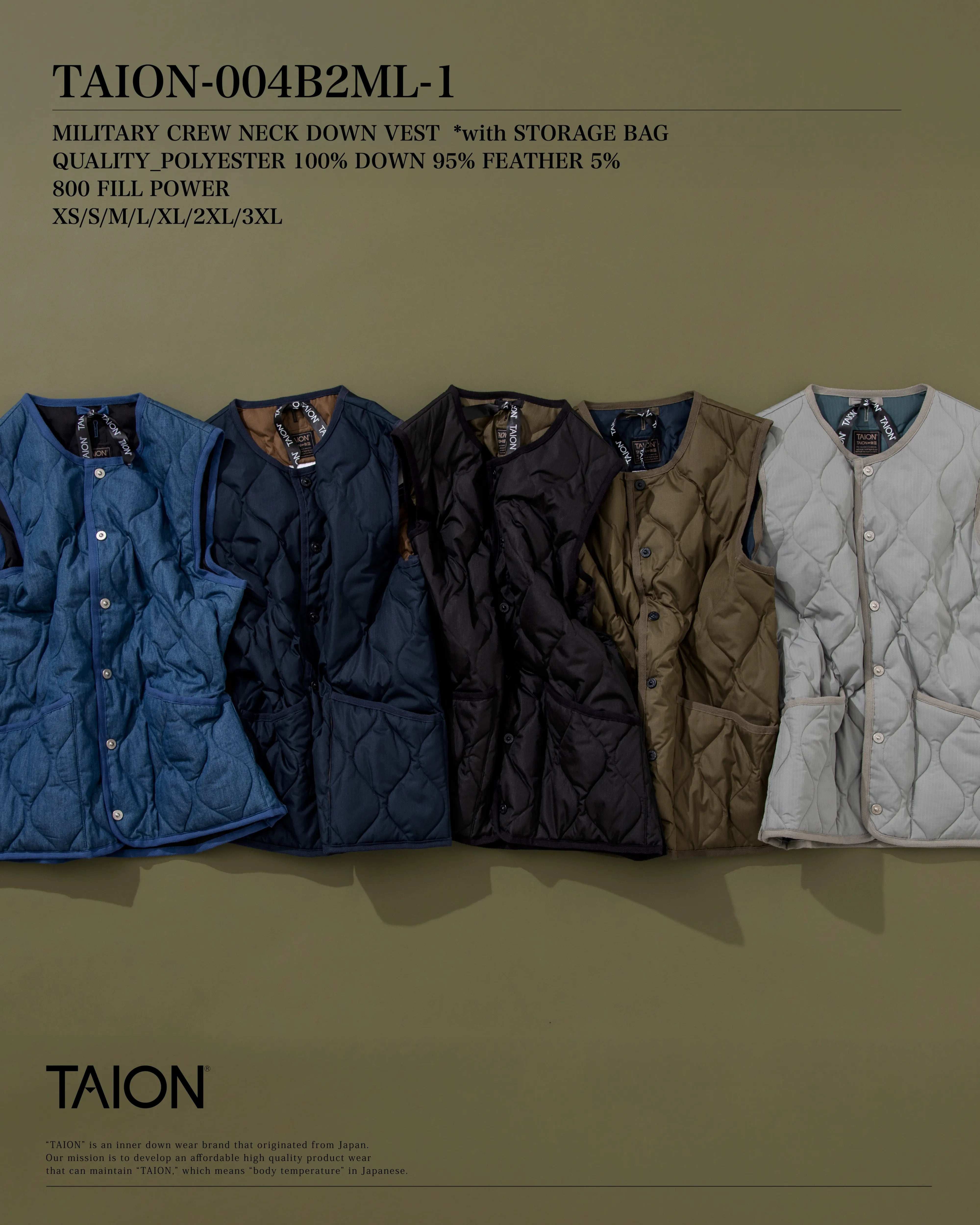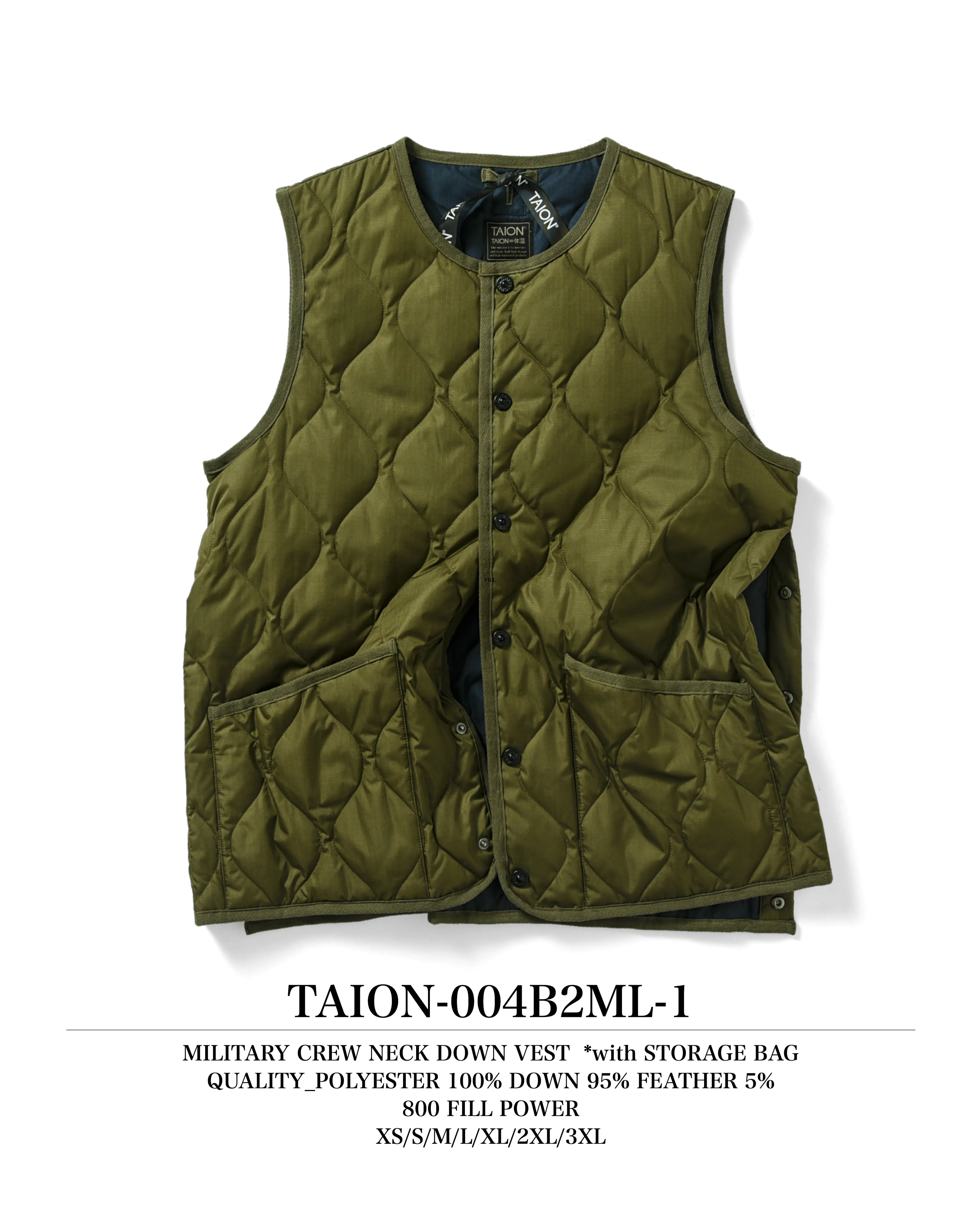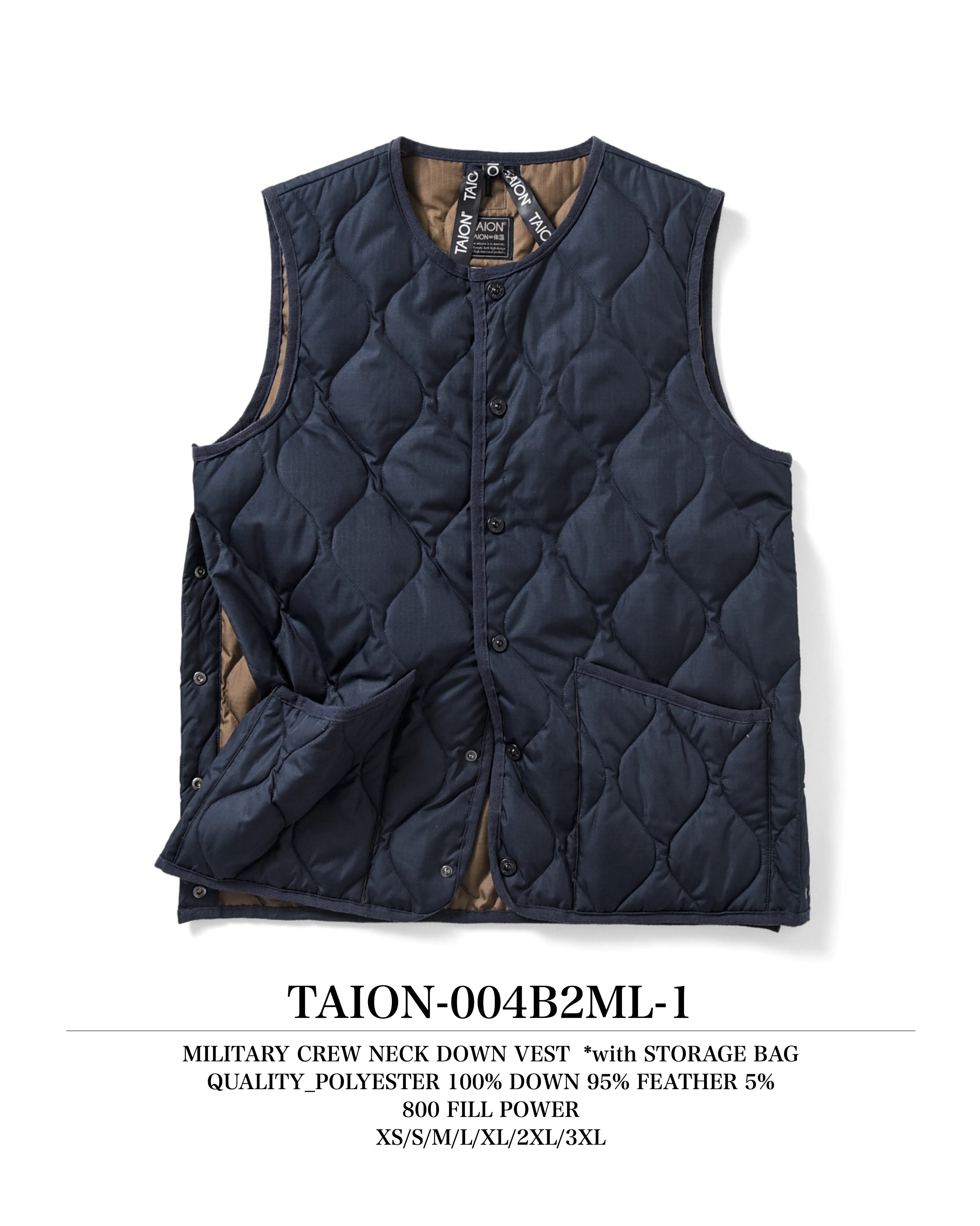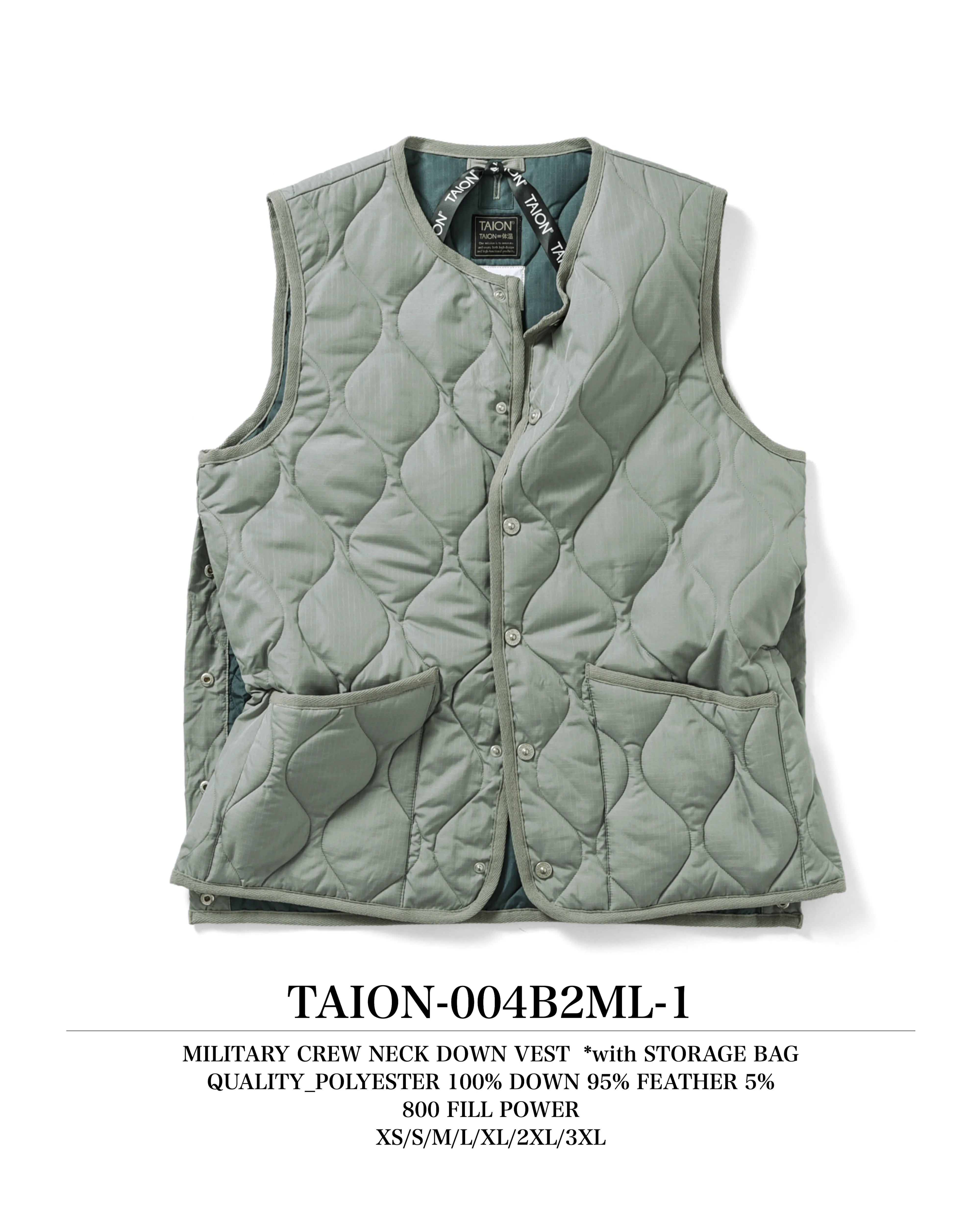 【UNISEX】ミリタリー クルーネックボタン ダウンベスト(TAION-004B2ML-1)