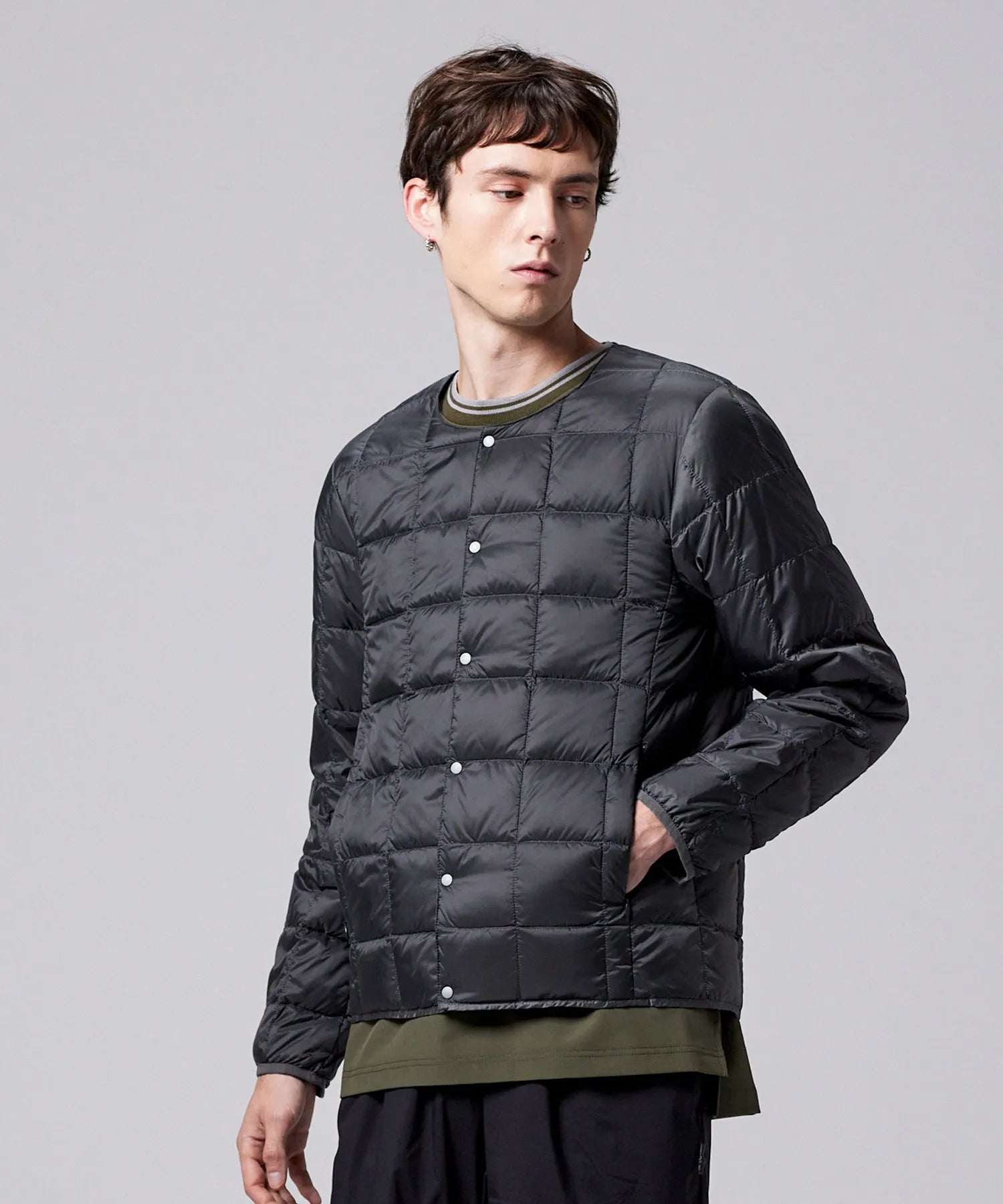 ベーシック クルーネックボタン インナーダウンジャケット