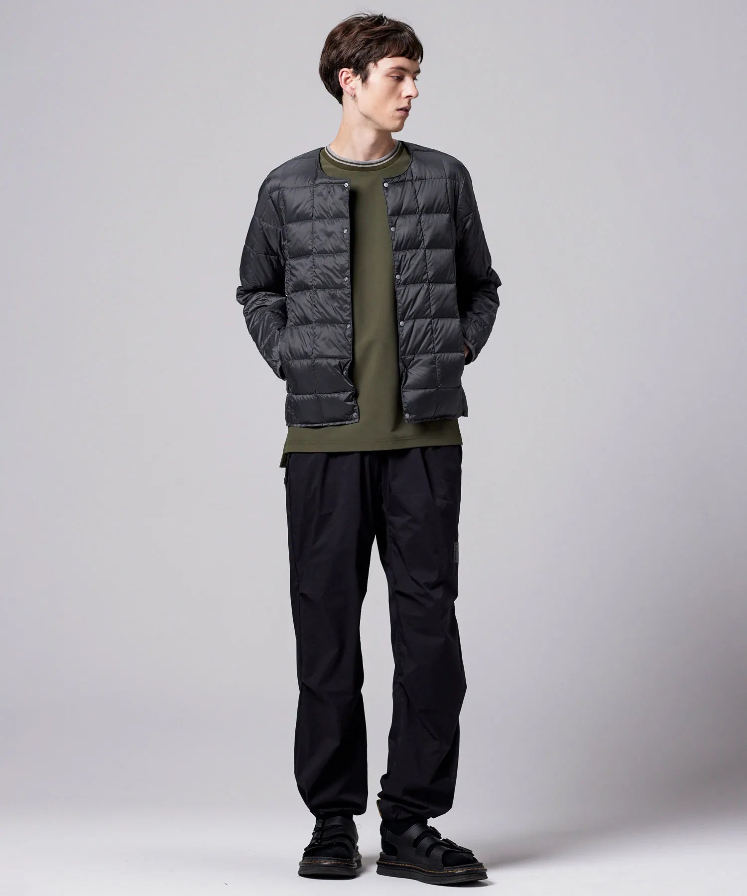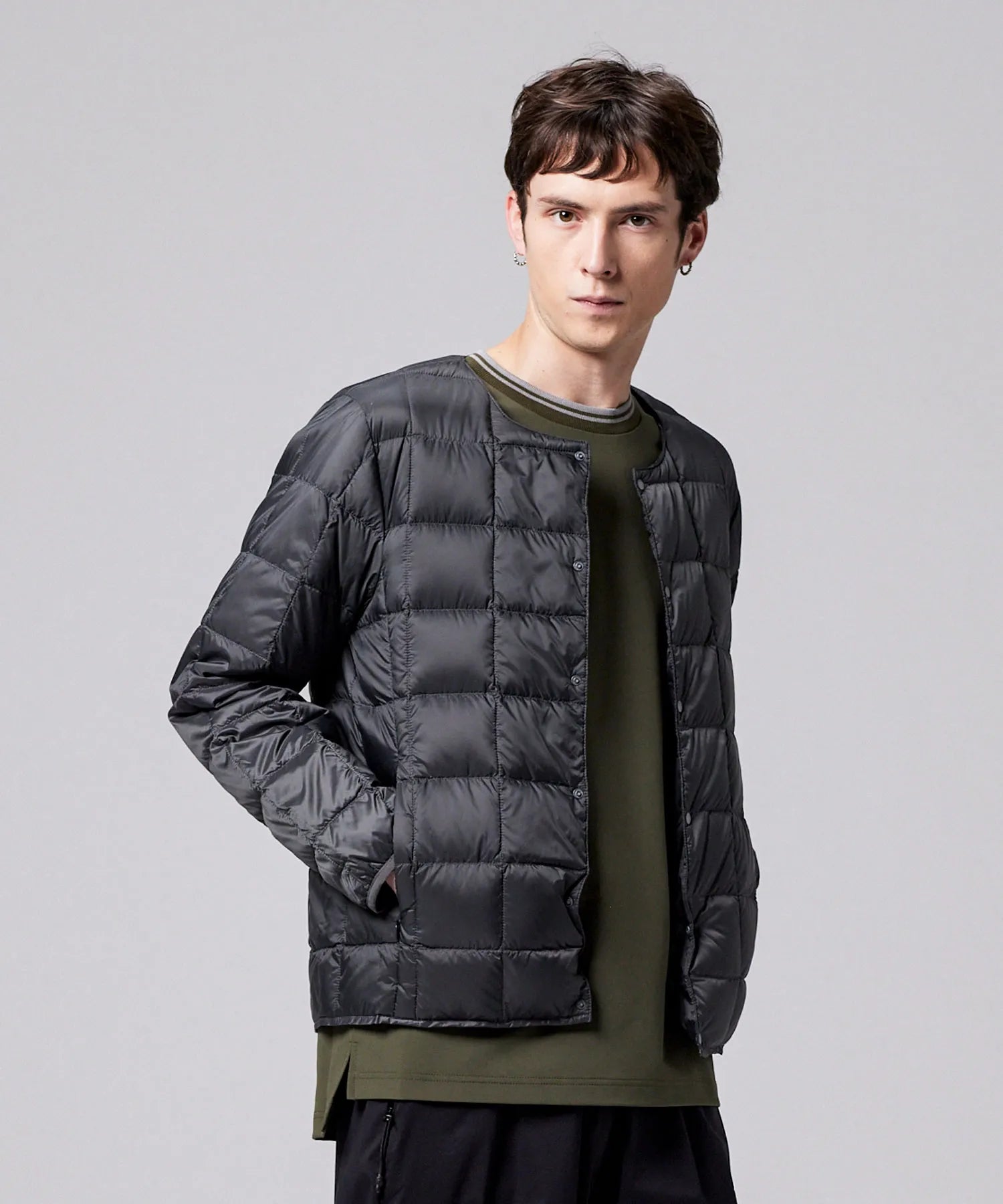 TAIONの定番、ベーシックインナーダウンは、ジャケットやコートの下に着るのはもちろん、Tシャツ・シャツ・パーカーなどの上にも気軽に羽織れる、軽くて暖かく着回しやすいシンプルなデザインが特徴です。