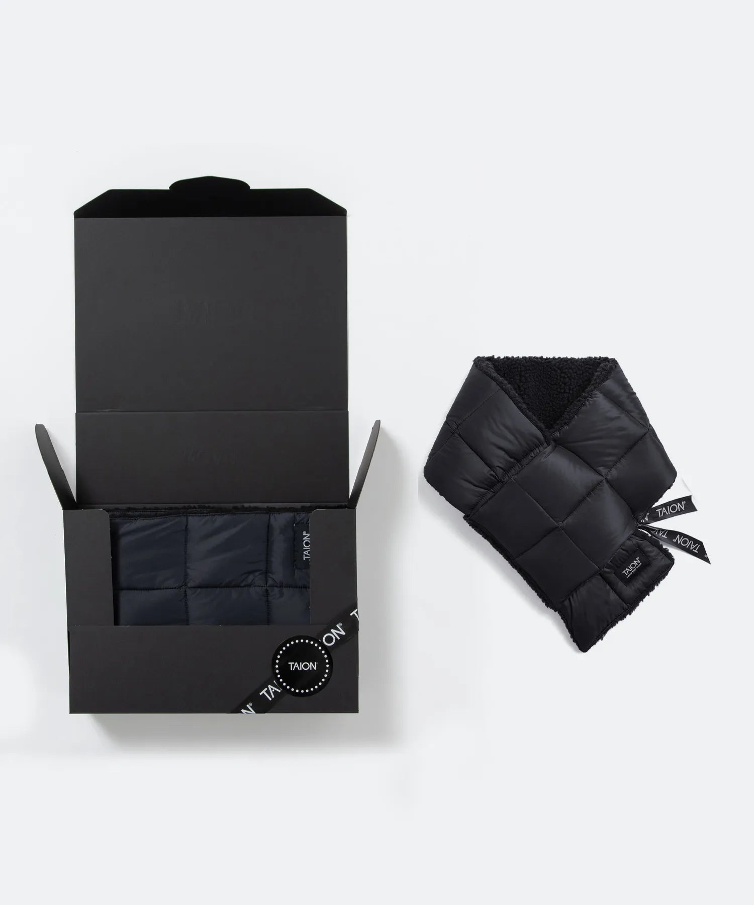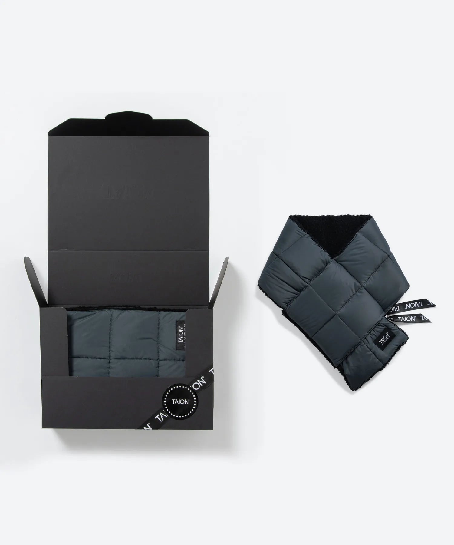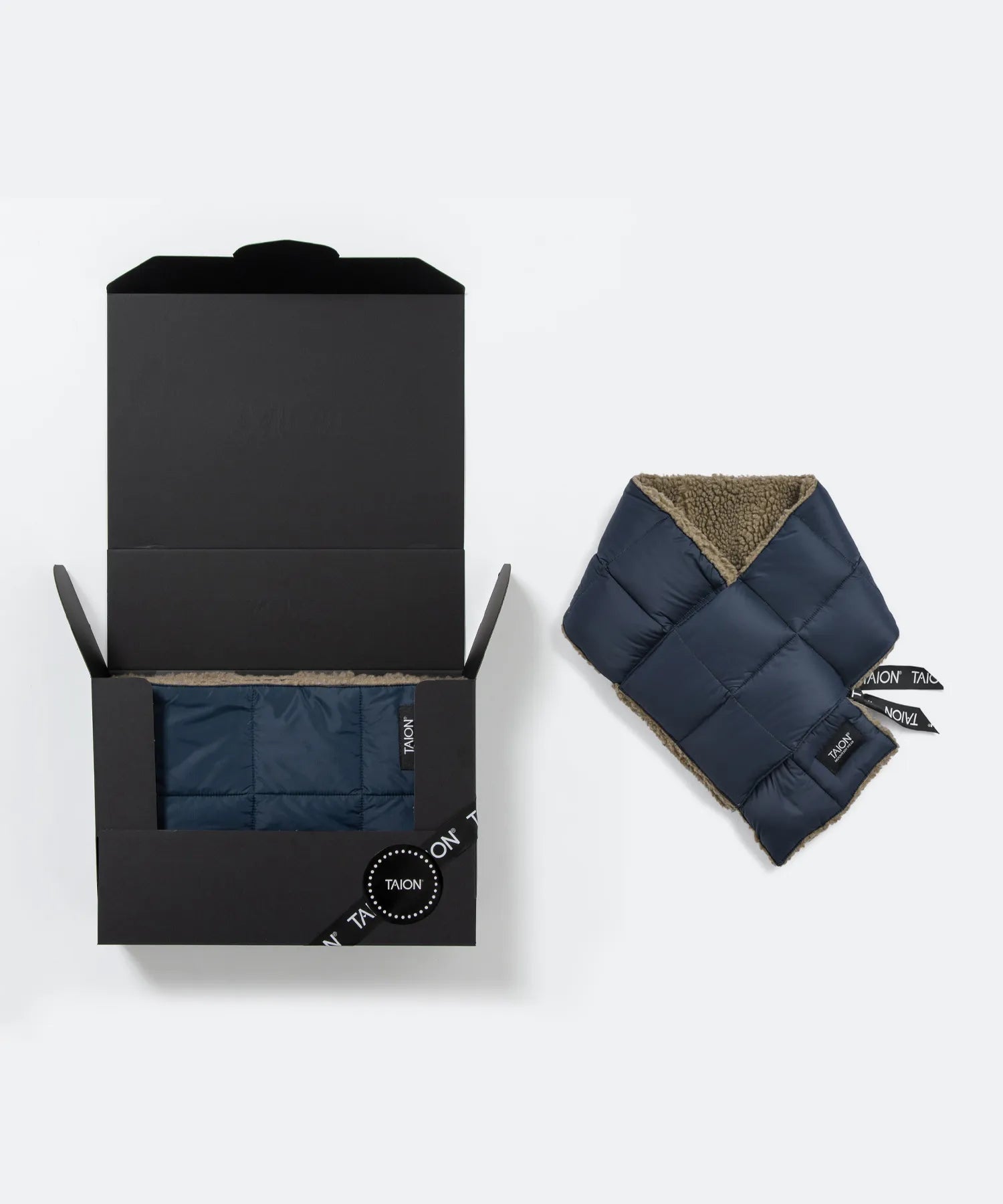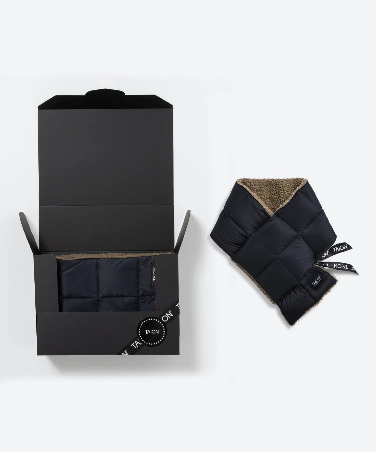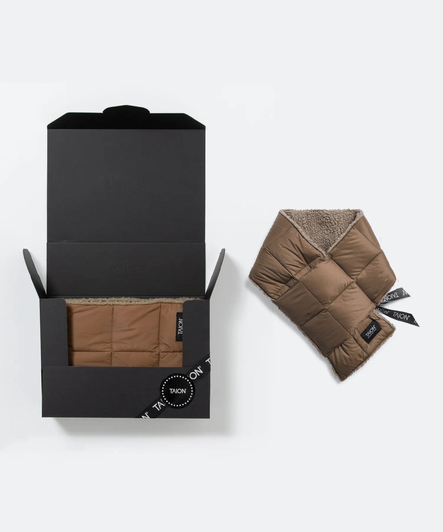 "ダウン×ボア"リバーシブルで楽しめる、ダウンマフラーのギフトセットです。