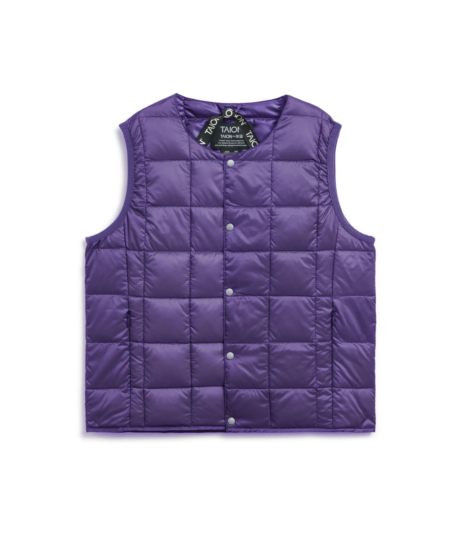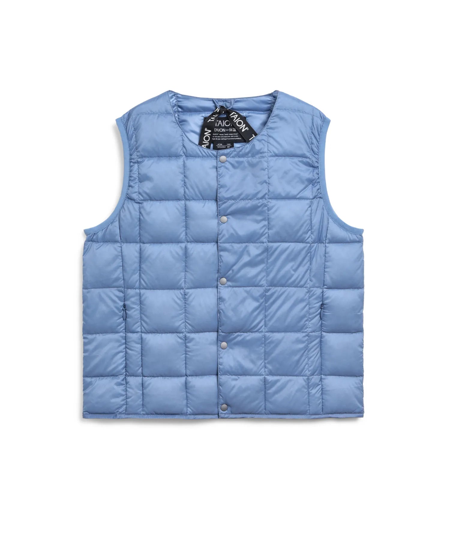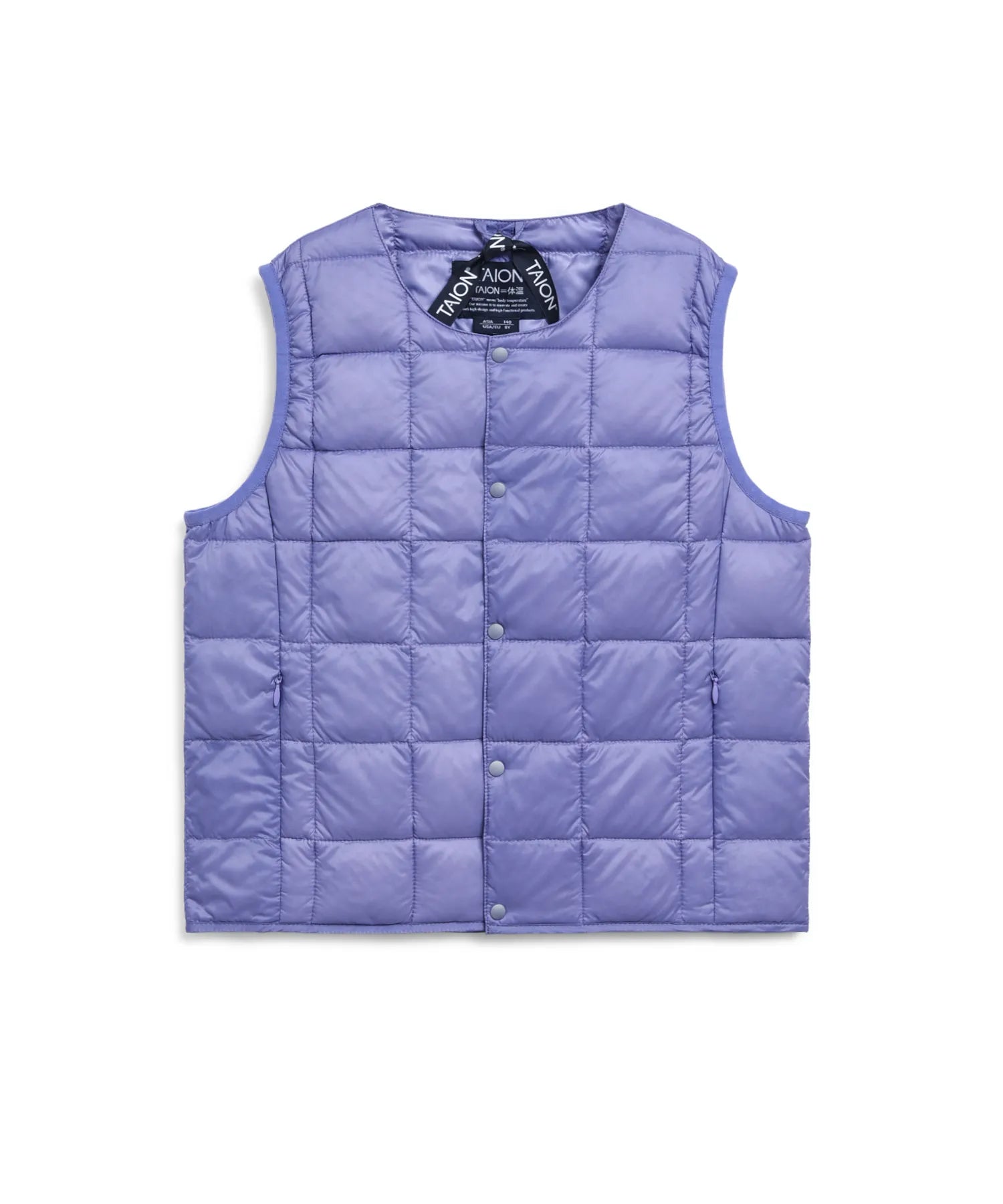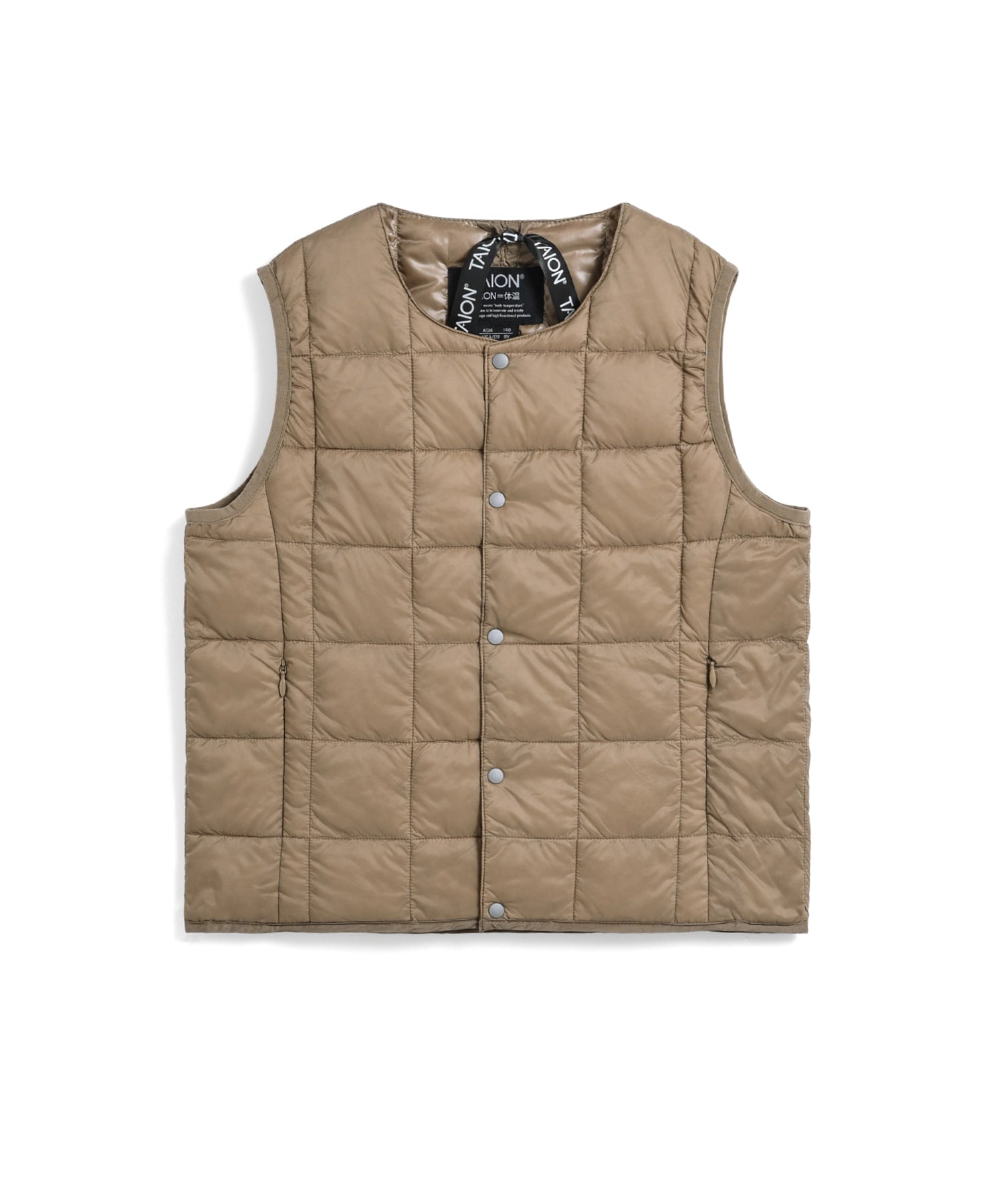 TAION KIDS LINEの定番インナーダウンは、お子様へ着させやすい前たてボタン仕様、首元にダウンが当たらない仕様など、お子様が着用したくなるような工夫を考えてみました。
