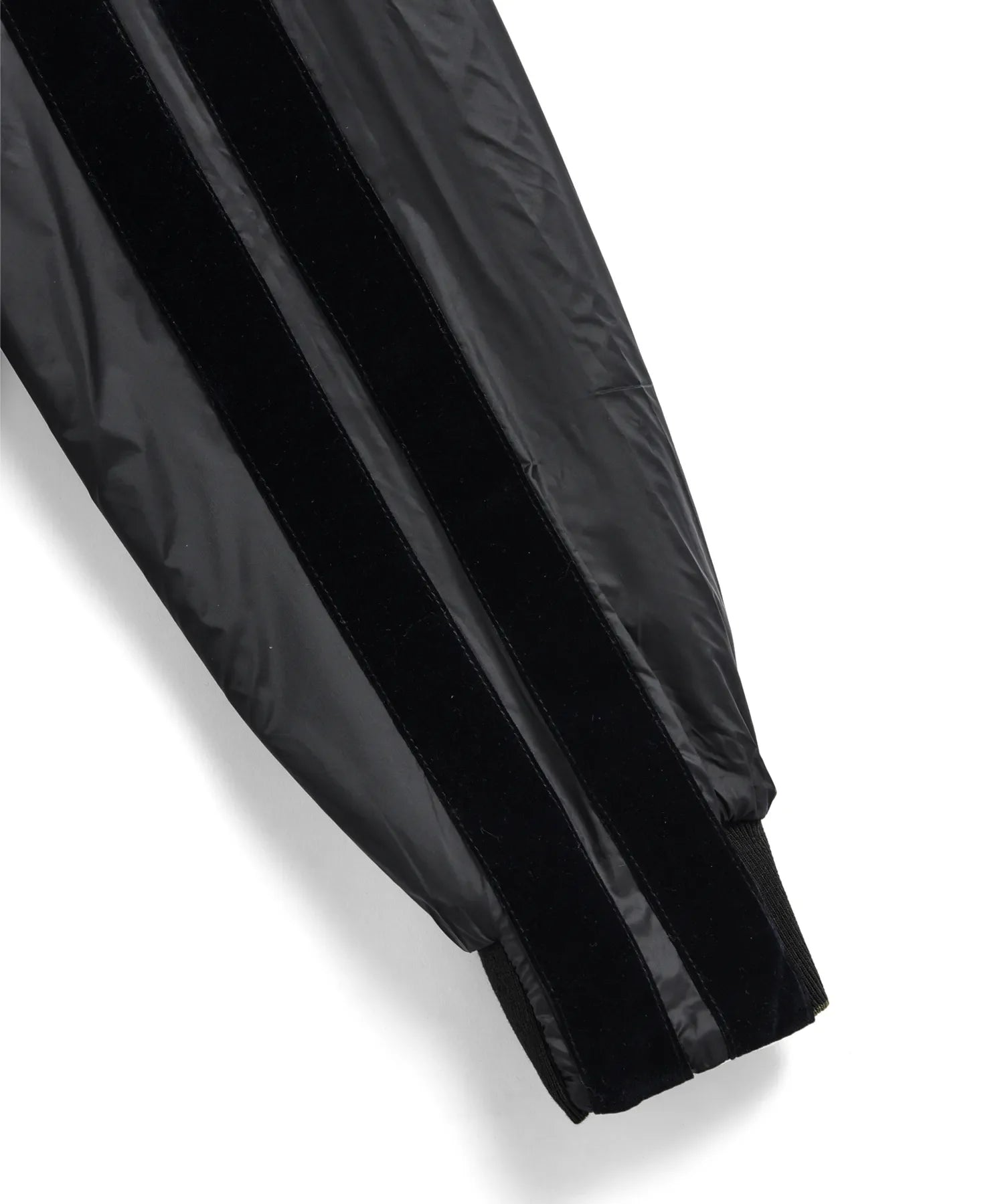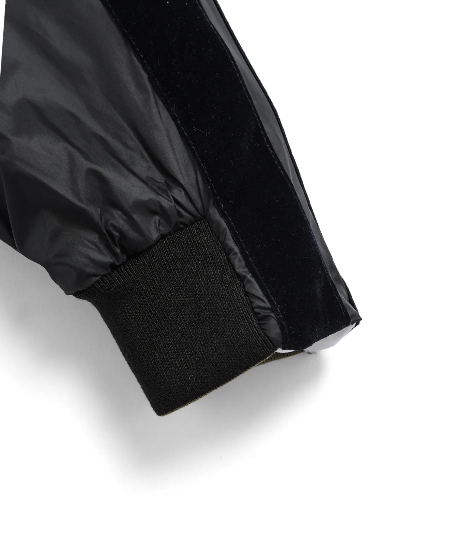 両脇には渋い光沢感のあるベロア生地のラインを配置。