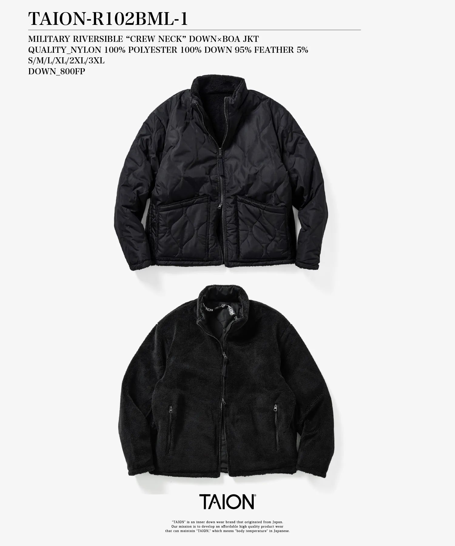 【UNISEX】ミリタリー リバーシブル ハイネック ダウンジャケット(TAION-R102BML-1)