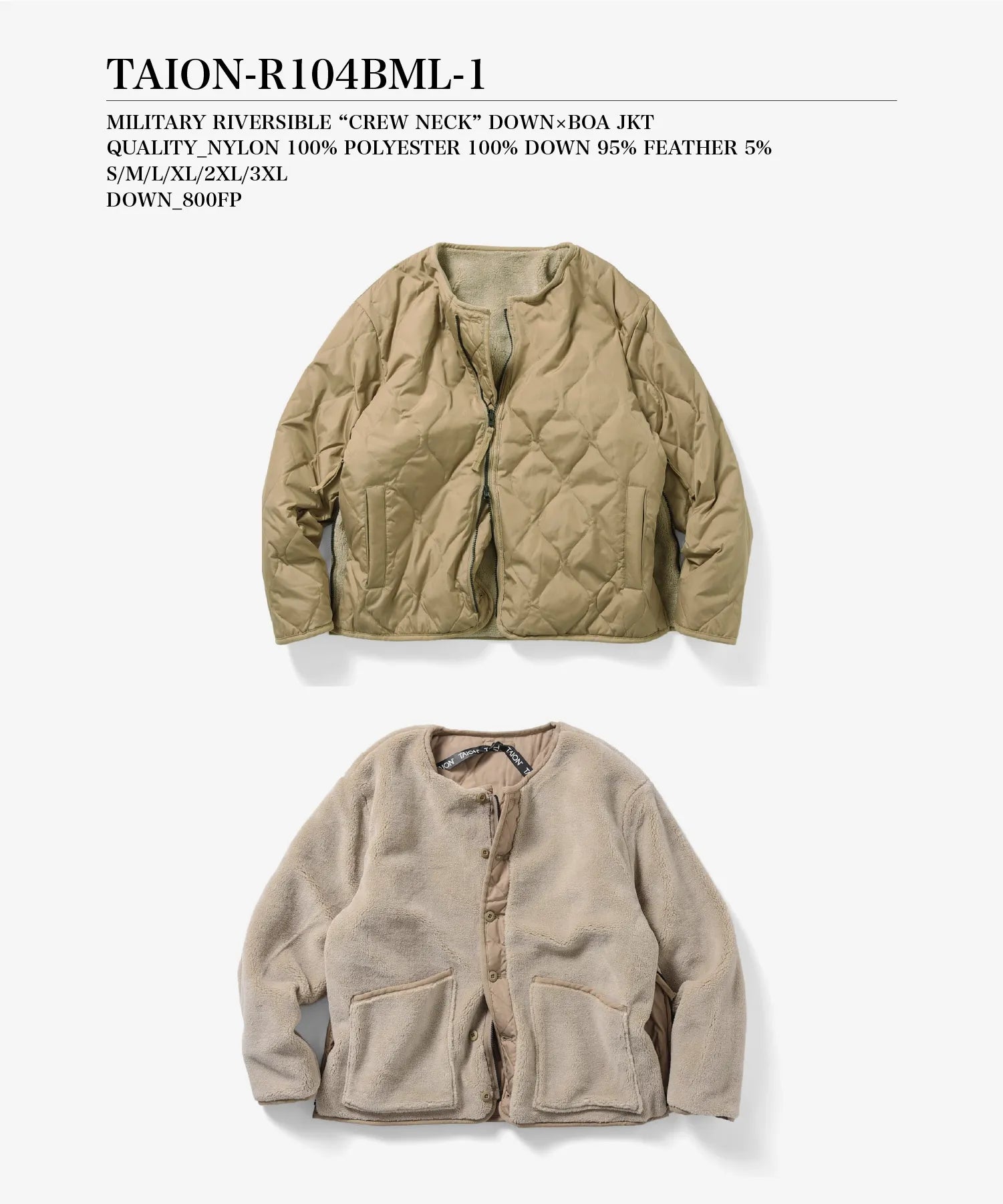 【UNISEX】ミリタリー リバーシブル クルーネック ダウンジャケット(TAION-R104BML-1)