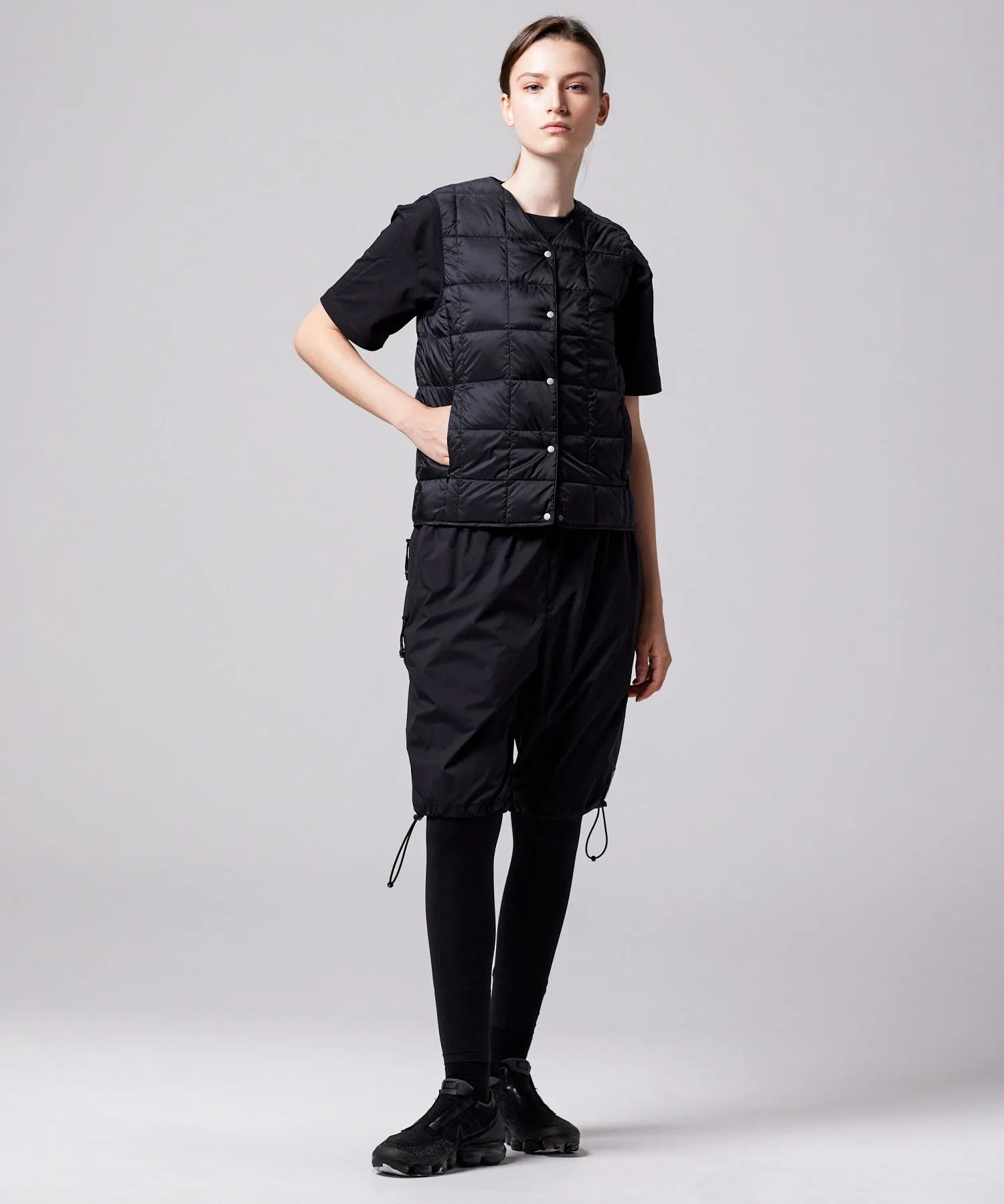 TAIONの定番、ベーシックインナーダウンは、ジャケットやコートの下に着るのはもちろん、Tシャツ・シャツ・パーカーなどの上にも気軽に羽織れる、軽くて暖かく着回しやすいシンプルなデザインが特徴です。