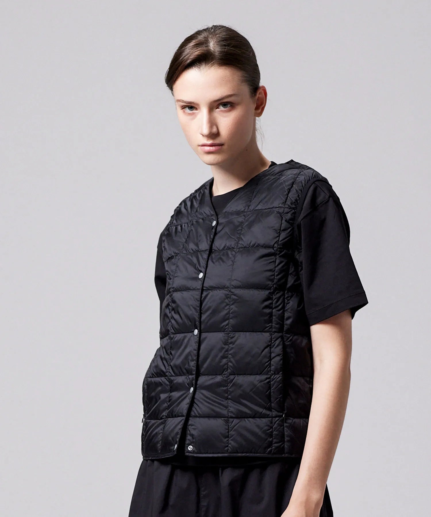 【WOMEN】ベーシック Vネックボタン インナーダウンベスト(TAION-W001)