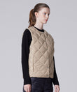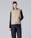 柔らかく心地いい着用感、ダイヤキルトがアクセントなクルーネックダウンベスト。